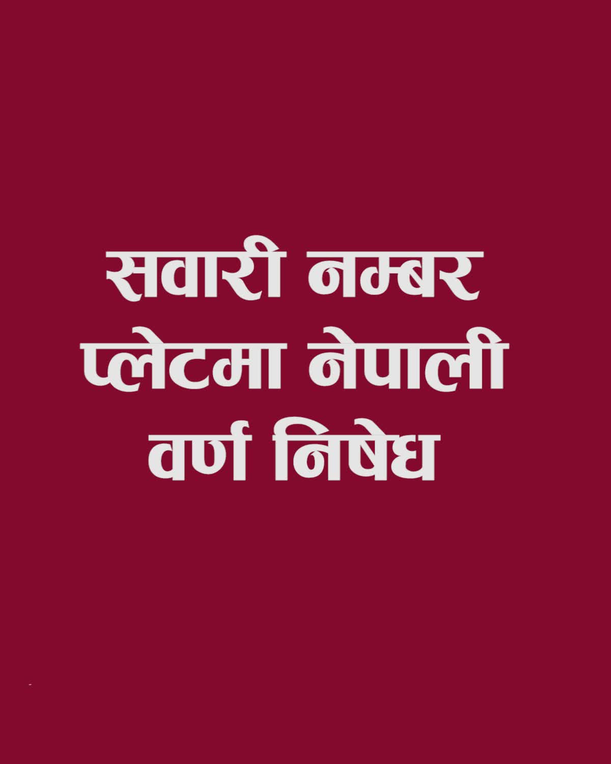 सवारी नम्बर प्लेटमा नेपाली वर्ण निषेध