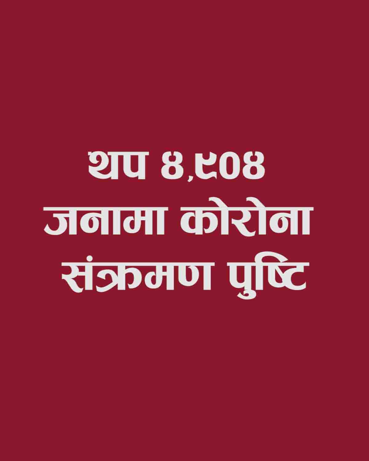 थप ४,९०४ जनामा कोरोना संक्रमण पुष्टि, ६ जनाको मृत्यु