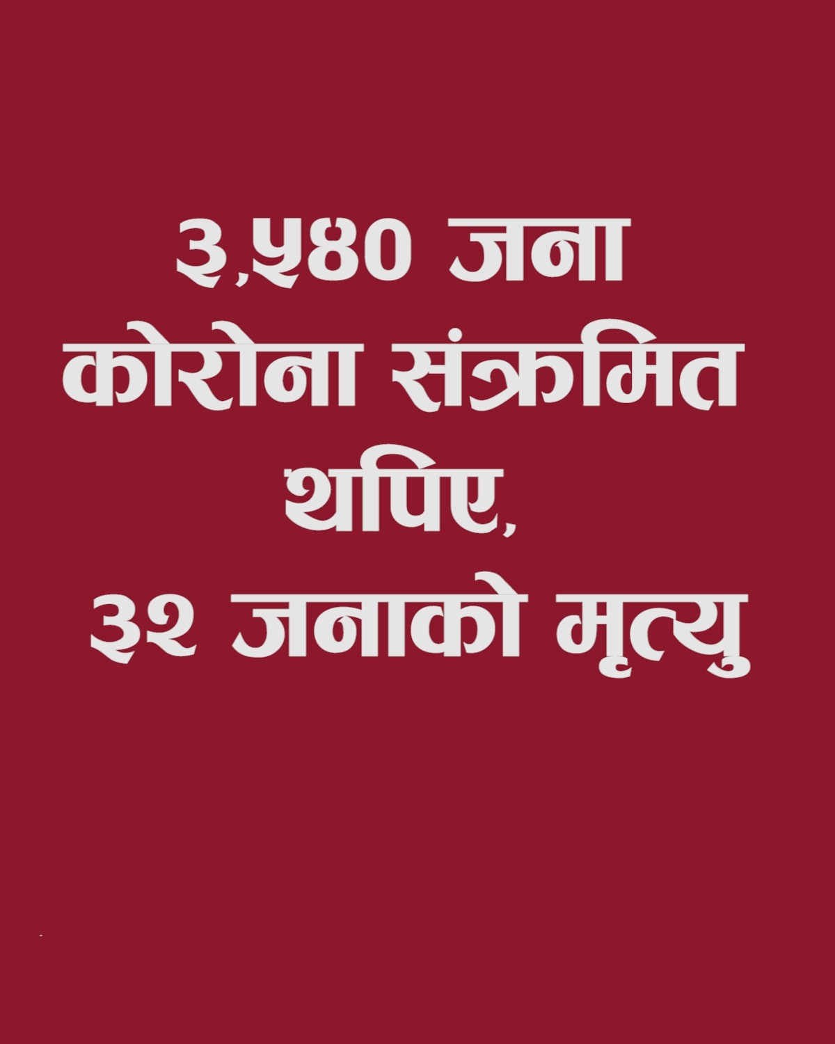 ३,५४० जना कोरोना संक्रमित थपिए, ३२ जनाको मृत्यु