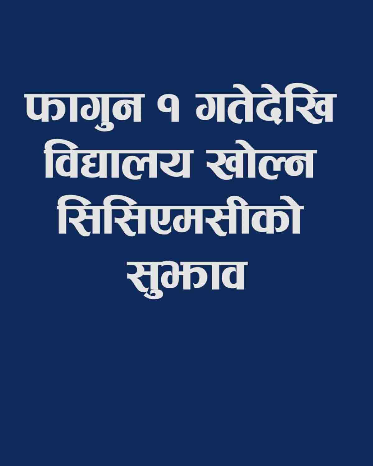 फागुन १ गतेदेखि विद्यालय खोल्न सिसिएमसीको सुझाव