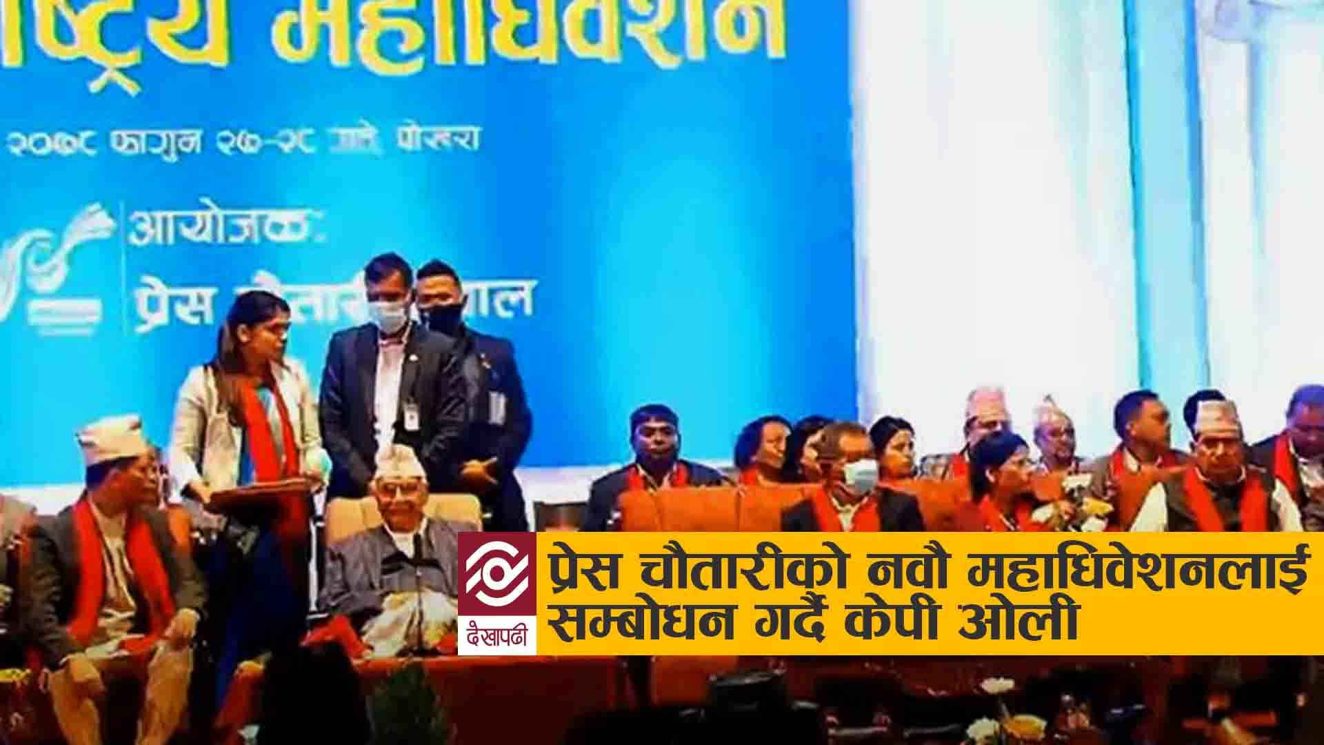 प्रेस चौतारीको नवौं महाधिवेशनलाई सम्बोधन गर्दै एमाले अध्यक्ष केपी शर्मा ओली