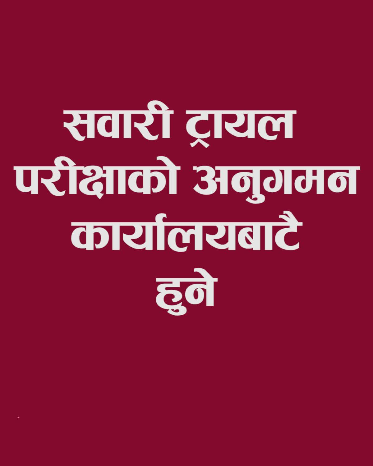 सवारी ट्रायल परीक्षाको अनुगमन कार्यालयबाटै हुने