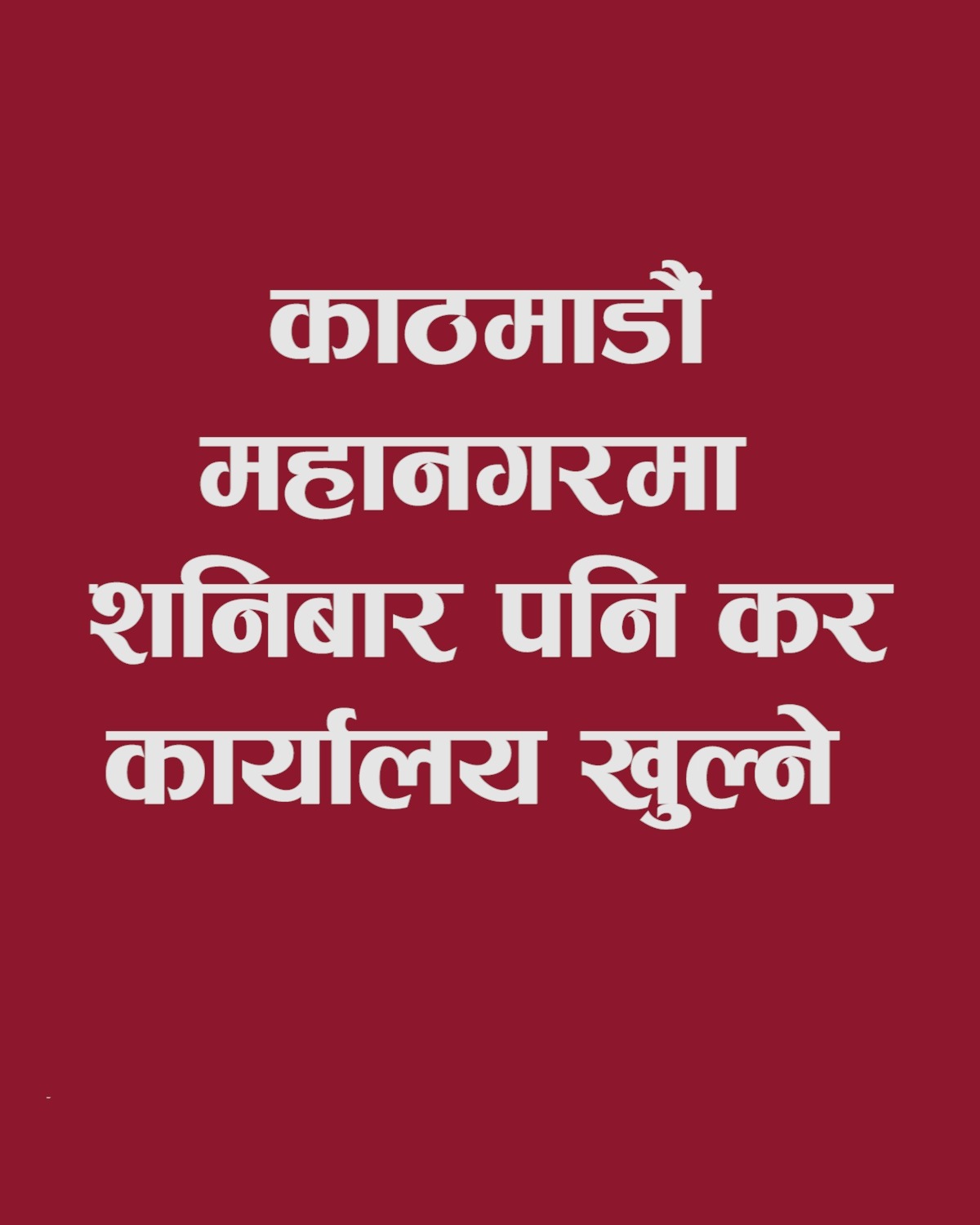 काठमाडौं महानगरमा शनिबार पनि कर कार्यालय खुल्ने