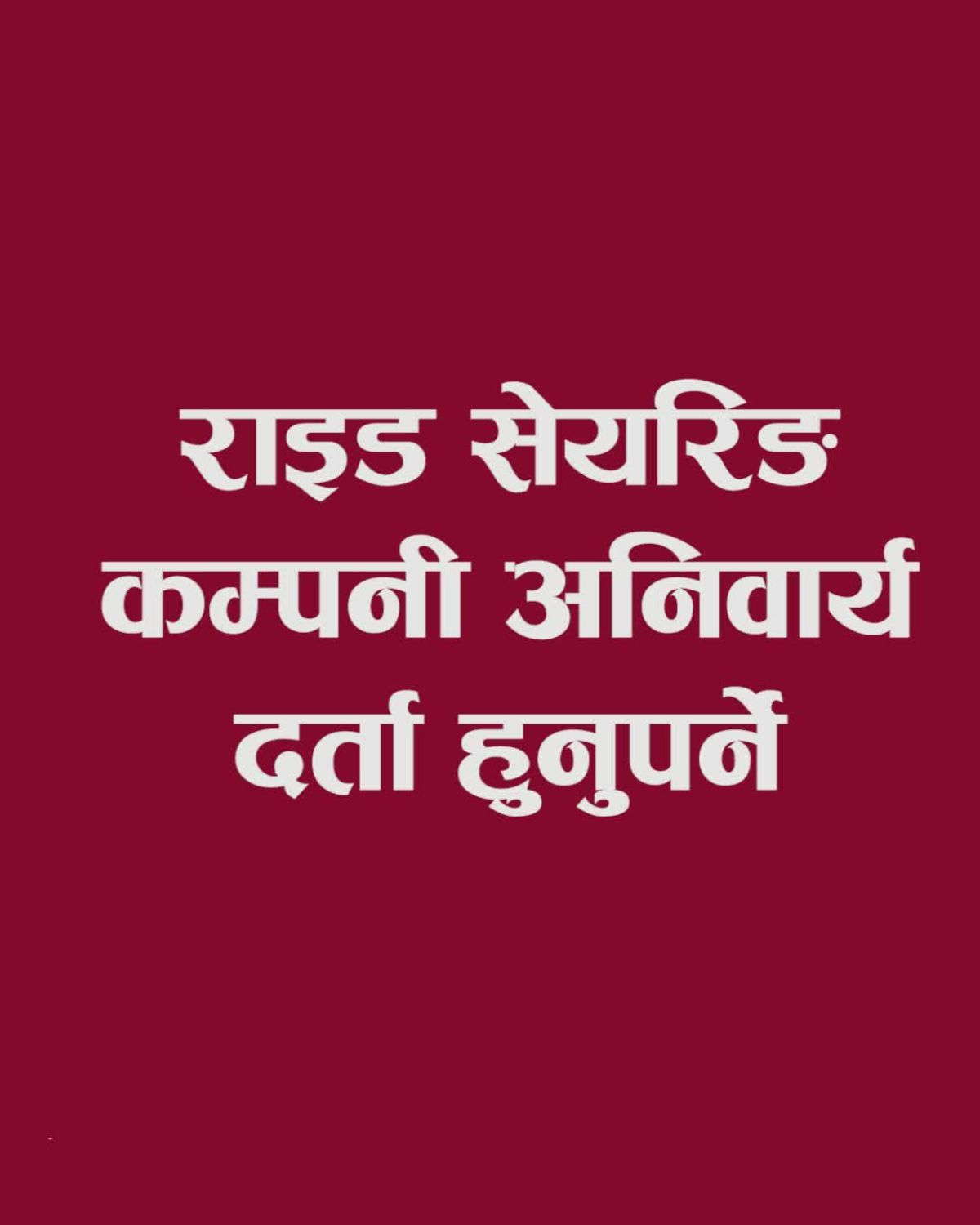 राइड सेयरिङ कम्पनी अनिवार्य दर्ता हुनुपर्ने
