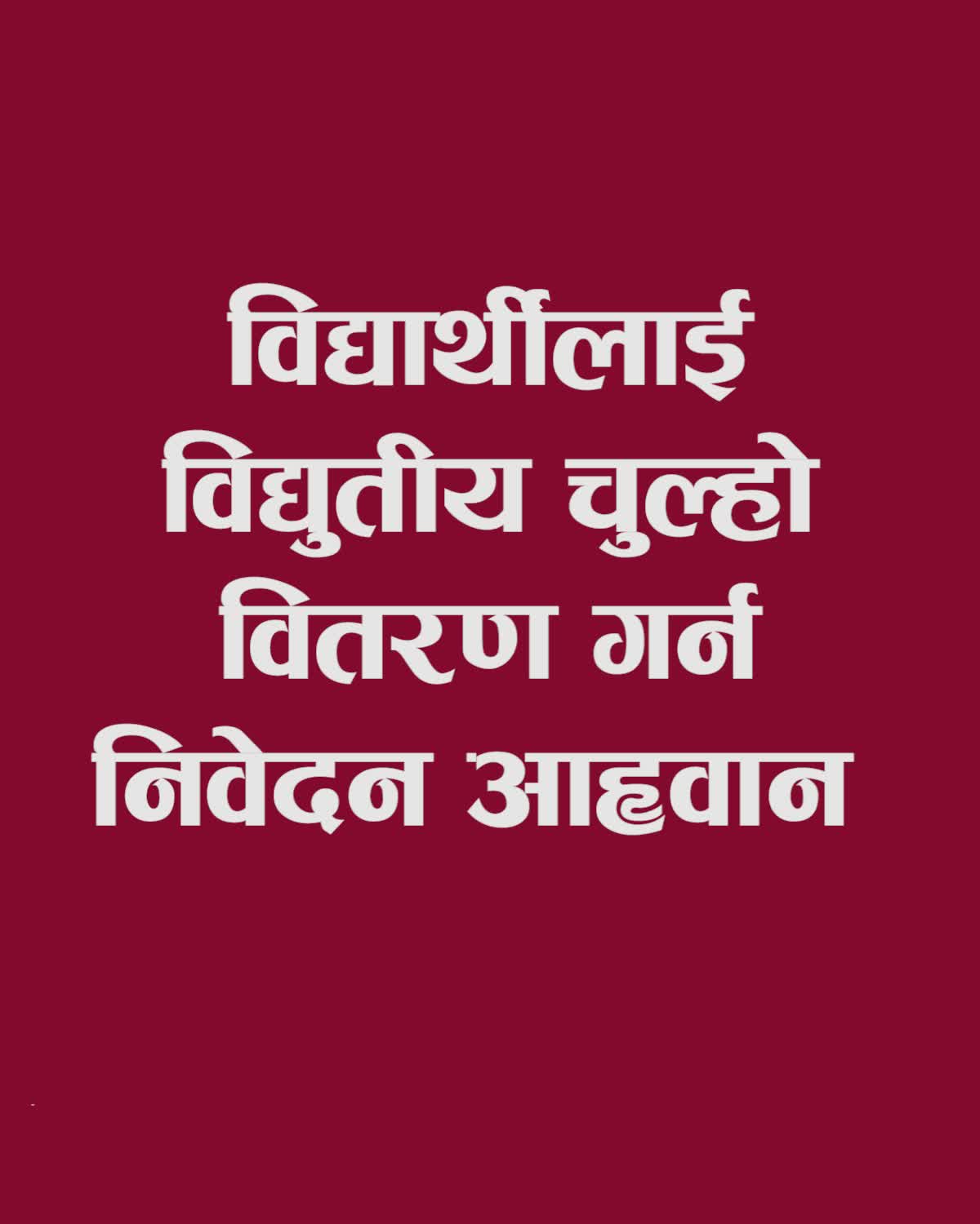 विद्यार्थीलाई विद्युतीय चुल्हो वितरण गर्न निवेदन आह्वान