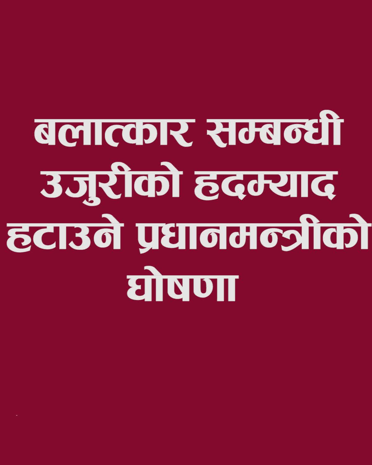 बलात्कार सम्बन्धी उजुरीको हदम्याद हटाउने प्रधानमन्त्रीको घोषणा