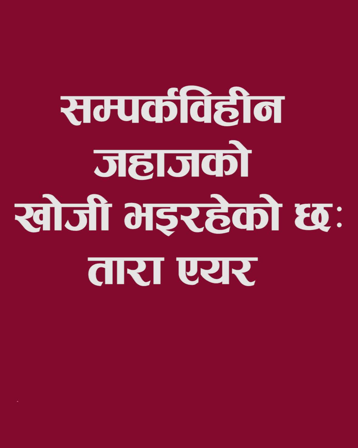सम्पर्कविहीन जहाजको खोजी भइरहेको छ: तारा एयर