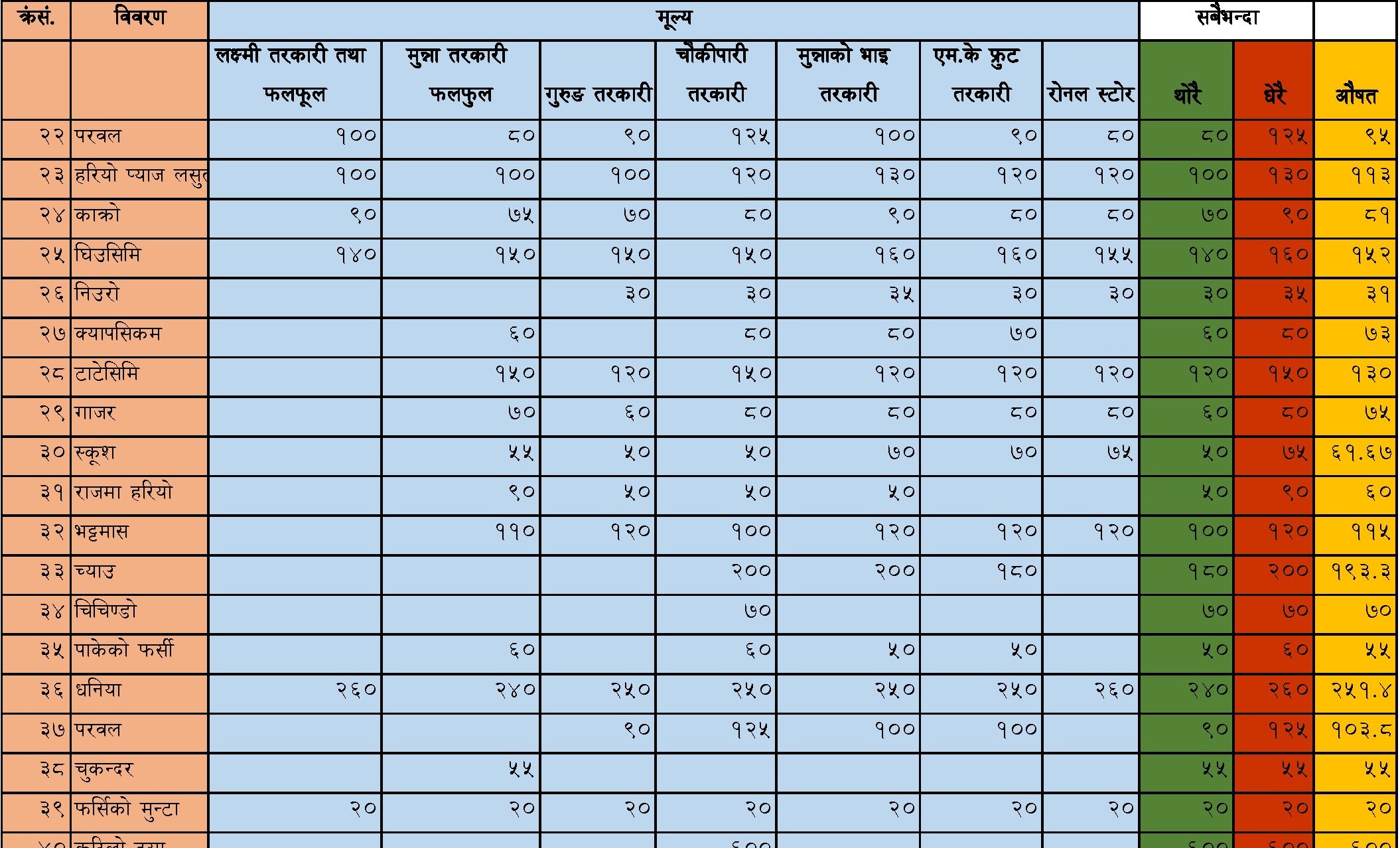 <p><strong>हेर्नुहोस उपत्यकाका पसलैपच्छिेको फरक मूल्य:</strong></p>