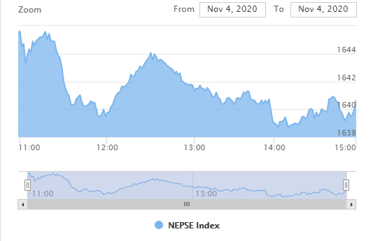 <p style="text-align: justify;">कारोबार खुलेदेखि नै ओरालो लाग्न थालेको परिसूचक १,६४० अंकमा आइपुगेर बन्द भएको छ। यस क्रममा आज नेप्सेमा १ अर्ब ७५ करोड रूपैयाँ बराबरको ५६ लाख ३१ हजार कित्ता सेयर किनबेच भएको छ।</p>