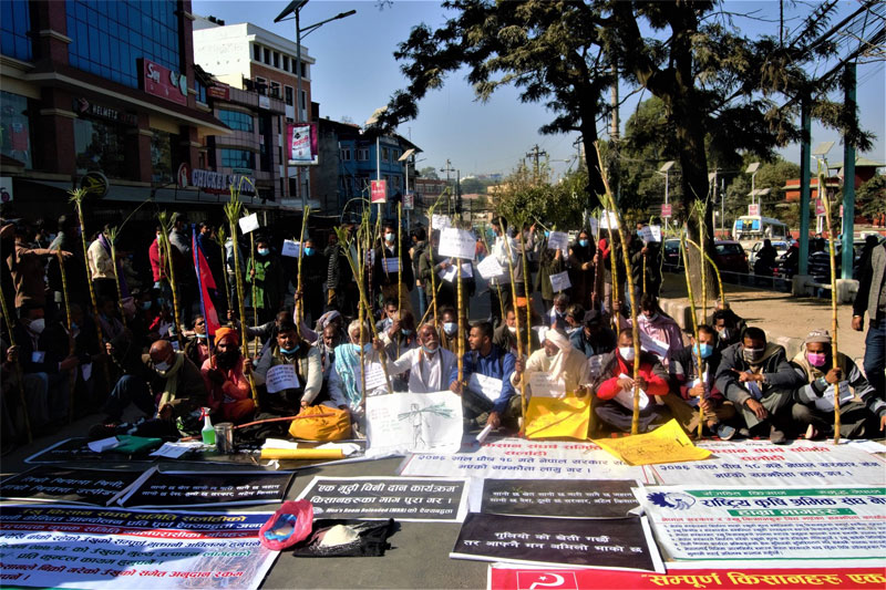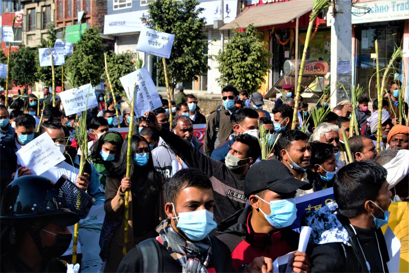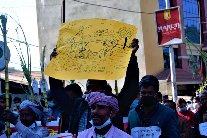 सरकारले चिनी द्योगीहरूबाट आफूहरूको बक्यौता भुक्तानी दिलाओस् भन्ने किसानहरूको माग छ।