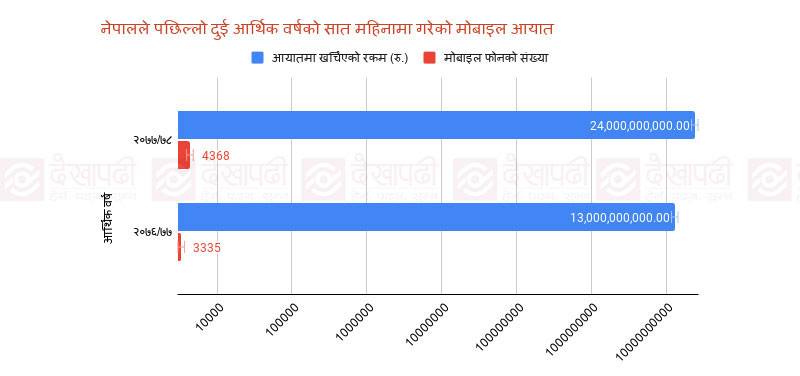 गत वर्षको आयात चालु आर्थिक वर्षको सात महिनामा भित्रिएको स्मार्टफोनको तुलनामा ११ अर्ब रूपैयाँले कम हो। चालु आर्थिक वर्षको माघसम्ममा २४ अर्ब छ करोड रूपैयाँ मोबाइल आयात गरेवापत बाहिरिएको छ। गत माघ महिनामा मात्रै नेपालमा तीन अर्ब ४३ करोड रूपैयाँ बराबरको स्मार्टफोन भित्रिएको तथ्यांक छ।