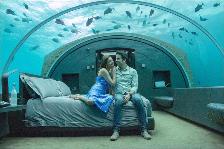 " /> काठमाडौं। बलिउड तथा साउथ इण्डियन अभिनेत्री काजल अग्रवाल हनिमुन मनाउन माल्दिभ्समा छिन्। ३० अक्टोबरमा व्यापारी गौतम किचलूसँग विवाह गरेकी काजल हनिमुनका लागि केही दिन अगाडि मात्र माल्दिभ्स गएकी थिइन्।माल्दिभ्समा उनले पानीमुनीको कोठामा रमाएका तस्वीर सार्वजनिक गरेकी छिन्। रूमभित्र दुवै जना एकदमै रमाइरहेको देखिन्छ भने बाहिर माछाहरू देखिन्छन्। काजलले निलो रंगको ब्याकलेस ड्रेस लगाएकी थिइन्।