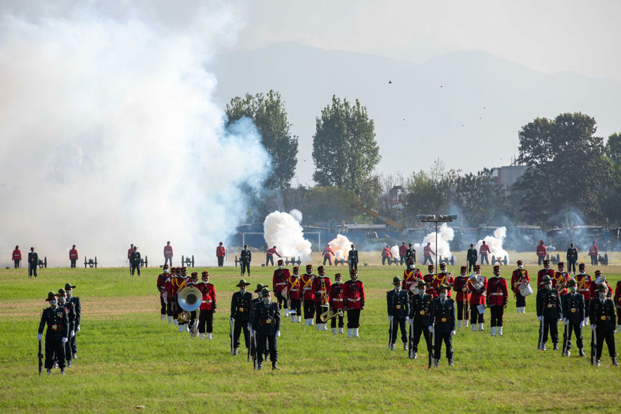 सो अवसरमा सेनाले फूलपाती बढाइँ कवाजअन्तर्गत राइफलबाट छिटो लहरे र एकठ्ठा बढाइँ गर्यो। तोपबाट पनि लहरे र एकठ्ठा बढाइँ प्रस्तुत गरिएकाे थियो।