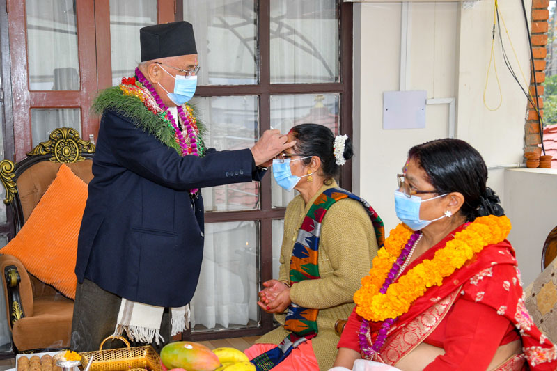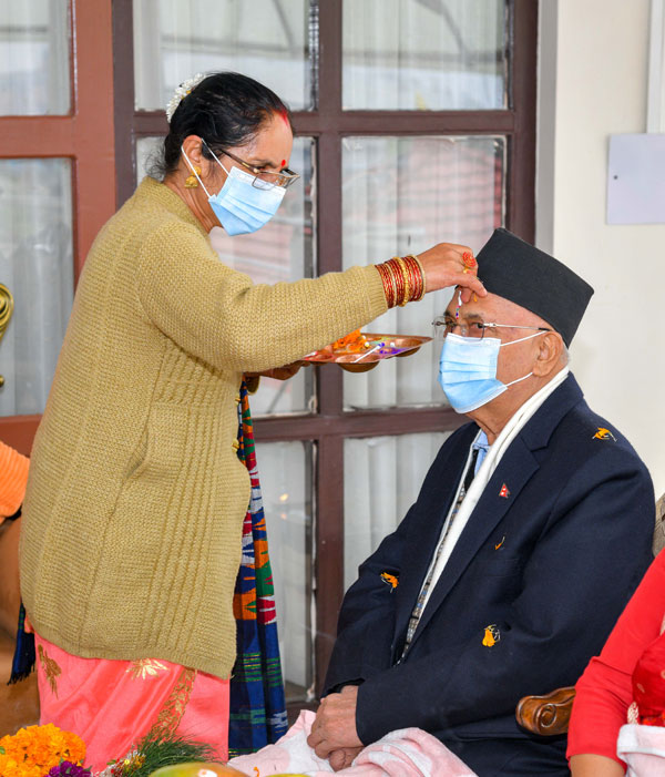 प्रधानमन्त्री ओलीले लगाए बहिनी कौशल्याको हातबाट भाइटीका