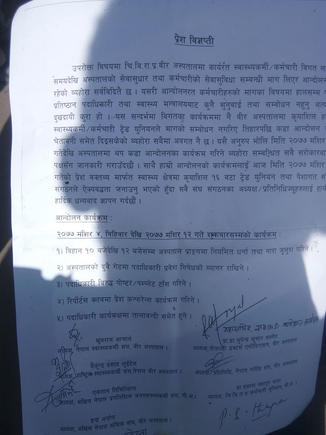 वीर अस्पतालका कर्मचारीहरू आन्दोलनमा