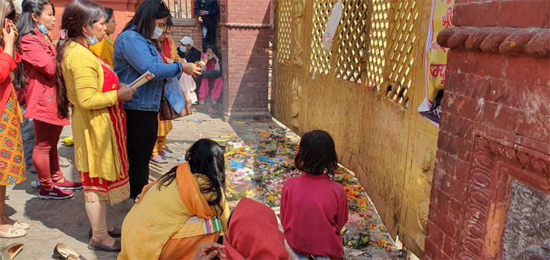 मन्दिर परिसरको गेटबाहिरै बत्ती बाल्नुका साथै पूजा गरिरहेका थिए। त्यही नजिकै एक जना पण्डित पनि आफ्नो काममा लागिहाले। ती पण्डितले भने, “भित्र जान नपाएकाहरू यहीनेर बत्ती बालेर गइरहेका छन्। यसरी बाहिरै बत्ती बाल्दा पनि भइहाल्छ।”