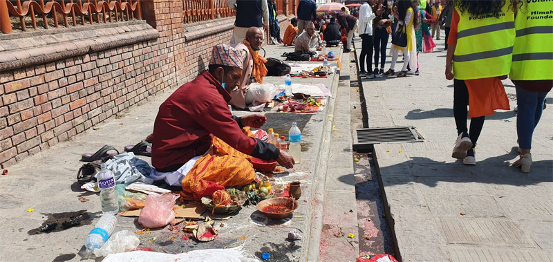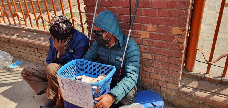 अपाङ्गता भएका व्यक्तिहरू स्पिकरसहित त्यहाँ उपस्थित थिए। उनीहरू दर्शन गर्न आएकाहरूले दिने पैसा तथा अन्य सामग्री संकलन गरिरहेका थिए।