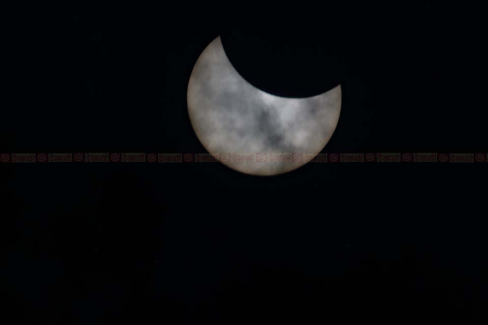 काठमाडौं। नेपाली आकाशमा आज खण्डग्रास सूर्यग्रहण देखियो। बिहान १०ः४२ बजेबाट देखिन शुरू गरेको खण्डग्रास सूर्यग्रहण दिउँसो २ः२९ मिनेटमा पूर्ण रूपमा हट्यो। खासमा आजको ग्रहण वलय सूर्यग्रहण भएपनि नेपालबाट भने खण्डग्रास मात्र देखिएको थियो। नेपालबाट वलय सूर्यग्रहण अवलोकन गर्न अब ४४ वर्ष कुर्नुपर्नेछ।