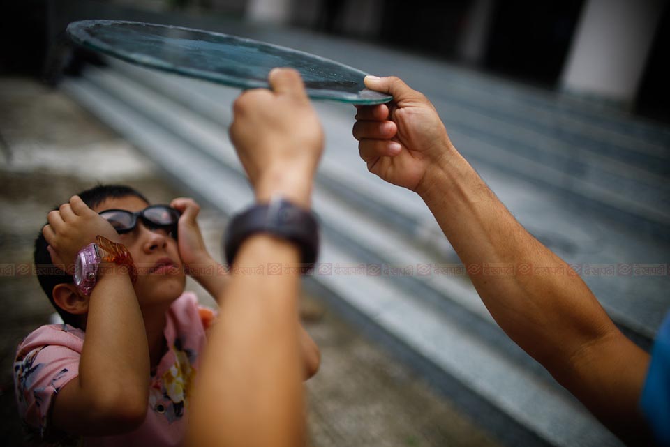 सूर्यग्रहणका बेला काठमाडौंको कीर्तिपुर टौदहका महिलाहरूले भजनकिर्तन गरे भने बीपी कोइराला प्लानेटेरियम अब्जभेटरी एण्ड साइन्स म्युजियम कीर्तिपुरबाट सूर्यग्रहणको अवलोकन समेत गरिएको थियो।