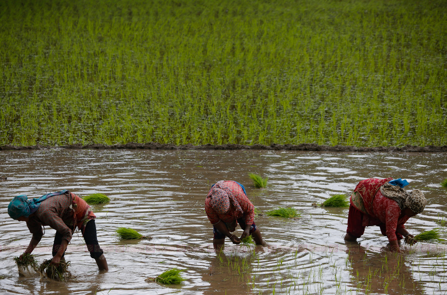 किसानहरू भने मनसुनी वर्षा शुरू भएपछि हरेक दिनजसो रोपाइँमा व्यस्त हुन्छन्। धान दिवसका दिन भने किसानहरू सामूहिक रूपमा दही चिउरा खाने, असारे गीत गाउने, नाचगान गर्ने र एक अर्कालाई हिलो छ्यापेर रमाइलो गर्ने गर्दछन्।