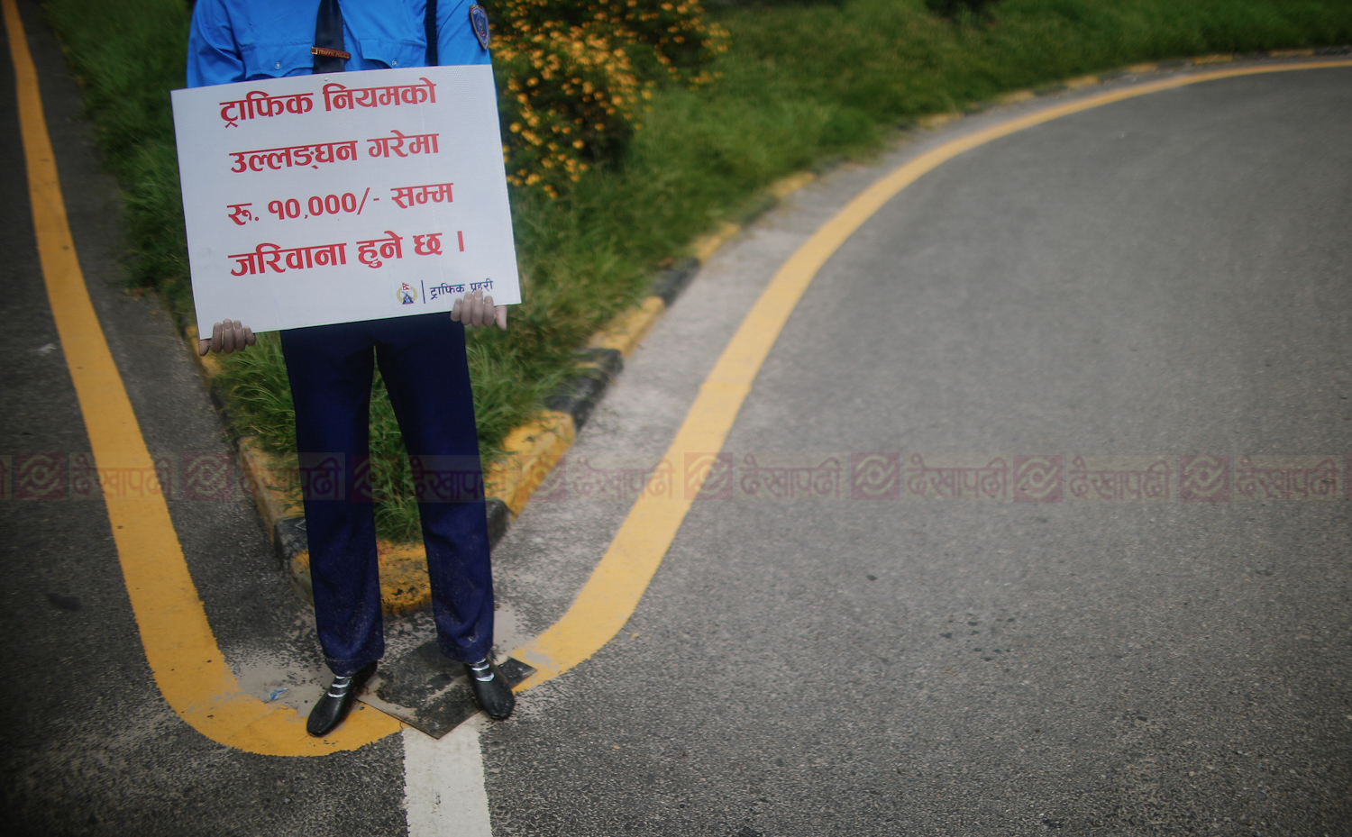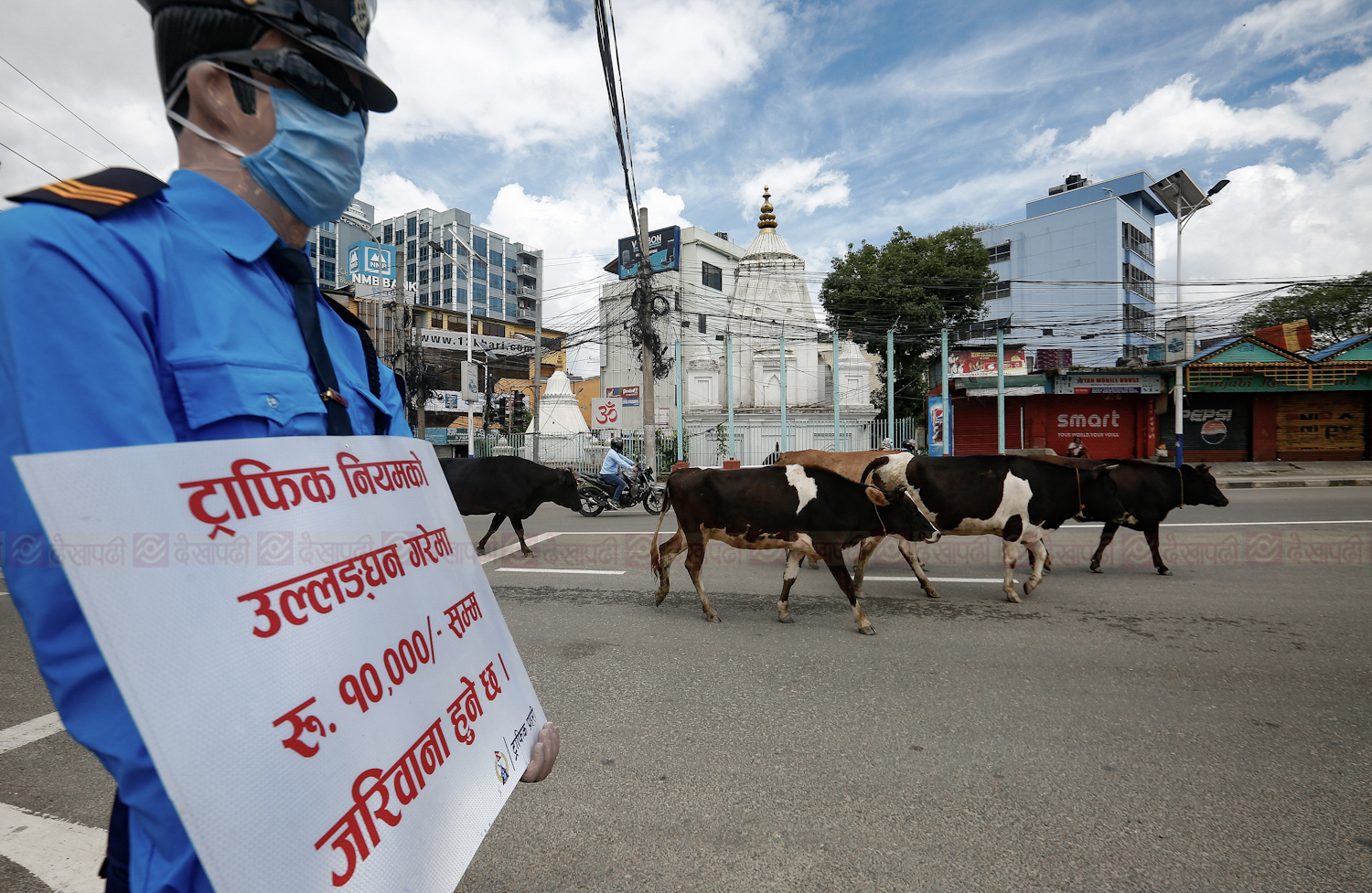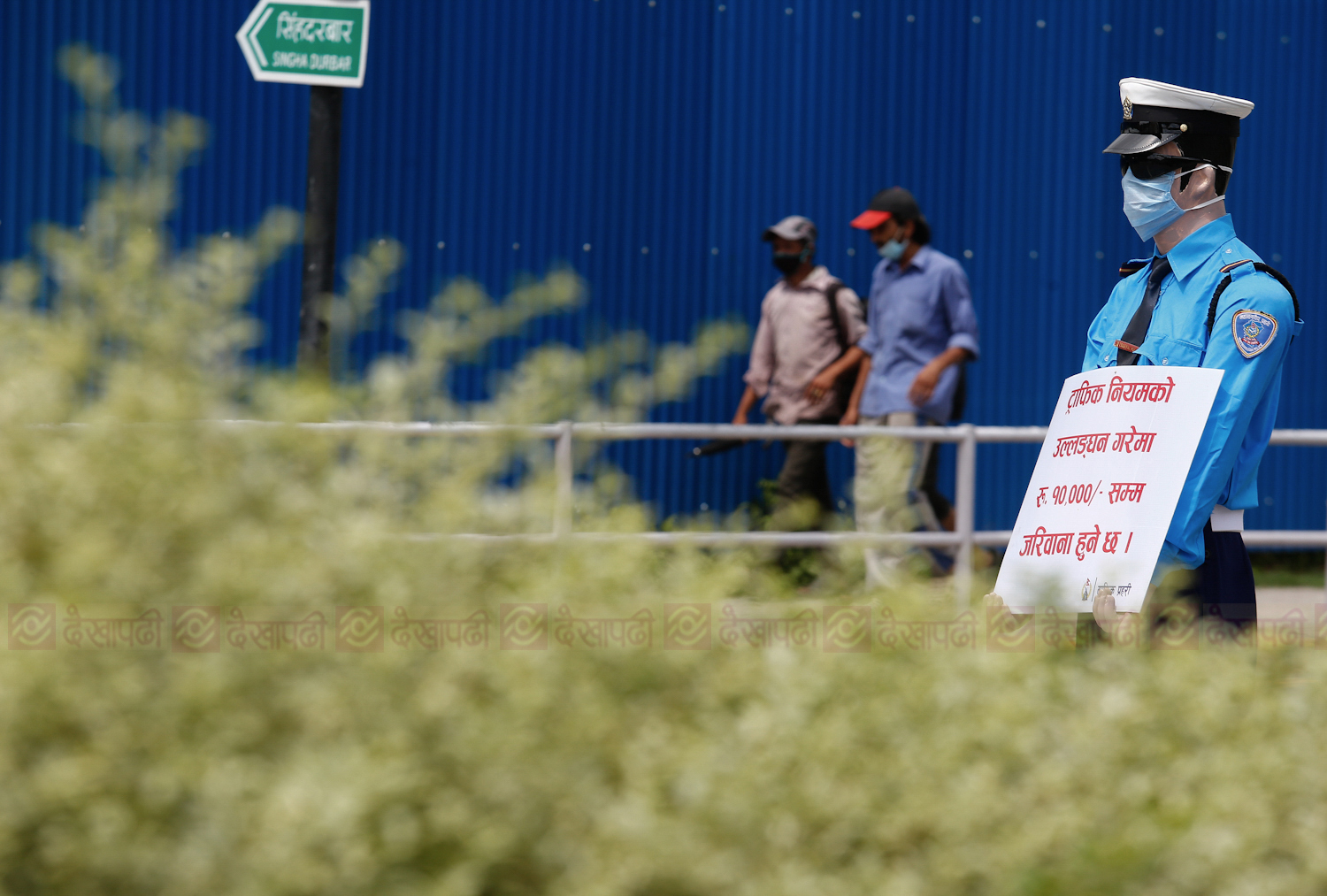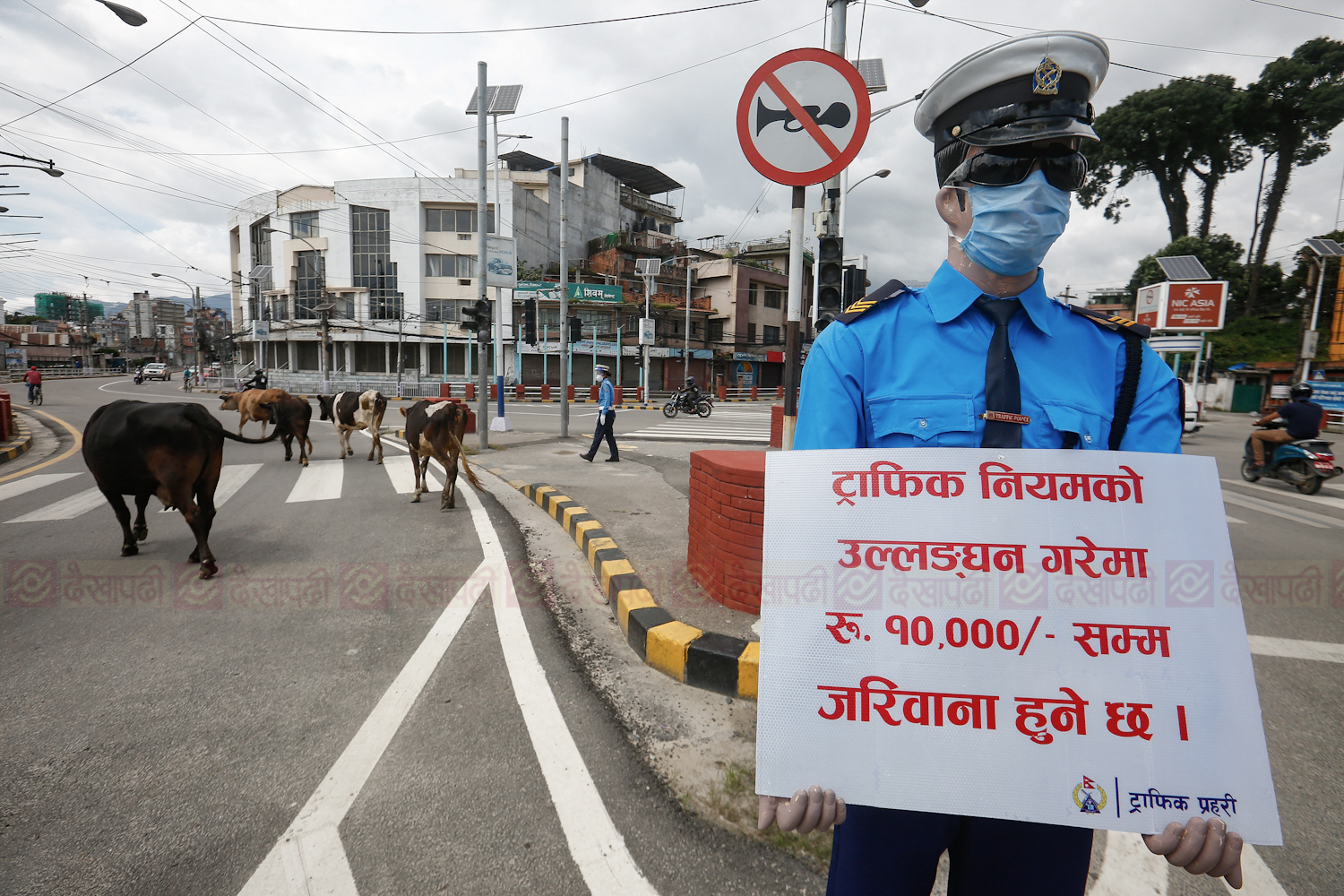 <p>काठमाडाैं। निषेधाज्ञामा बुधबार काठमाडौंका मुख्य-मुख्य चोकहरुमा अलि फरक दृश्य देखियो। ट्राफिक प्रहरीहरु जानकारीमुलक सन्देश बोकेर एकटकले उभिइरहेका देखिन्थे। यसरी सन्देश बोकेर उभिएका ती ट्राफिक प्रहरी वास्तविक भने थिएनन्। ती त थिए ट्राफिकको पहिरन लगाएका पुतला। जो झट्ट हेर्दा जीवन्त नै देखिन्थे। कोरोना भाइरसको महामारी कायमै रहँदा यसरी चोकहरूमा ठड्याइएका पुतलाले मास्क पनि लगाएका रहेछन्। थापाथली, कोटेश्वर, माइतीघर, सिंहदरबार र बानेश्वरमा देखिएका तिनै ट्राफिकका पुतलाका केही तस्बिरहरू।</p>