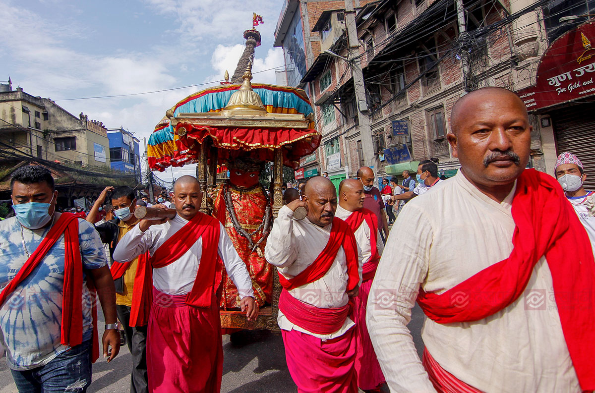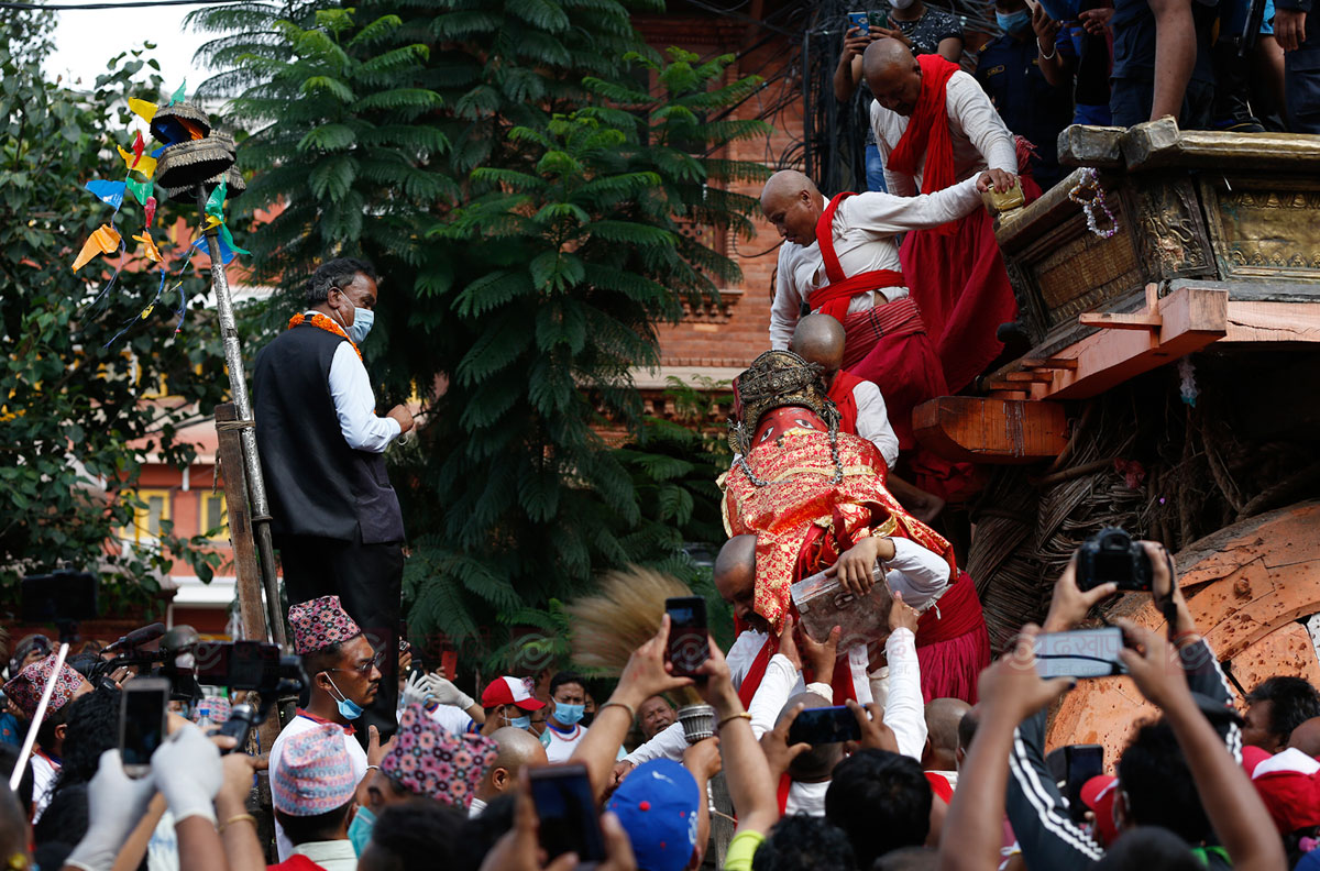 लामो समयसम्म पुल्चोकमा राखिएको रथलाई भदौ २१ गते ललितपुर महानगरपालिका अगाडिको चोकसम्म तानेर टुङ्ग्याइएको थियो। त्यसअघि निषेधाज्ञाकै समयमा भदौ १९ गते केही समूहले रथ तान्न खोजेपछि प्रहरीसँग झडपको अवस्थासमेत सिर्जना भएको थियो।</p>