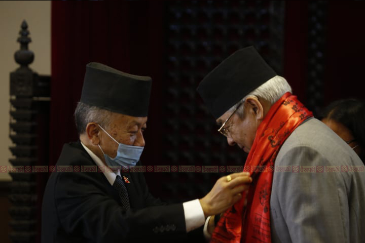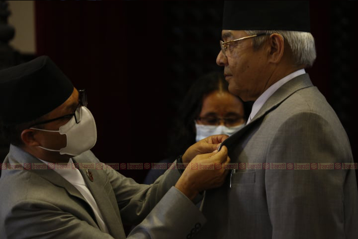 राष्ट्रिय सभा सदस्यको शपथ लिँदा दङ्ग देखिएका वामदेव ! (तस्वीरहरु)