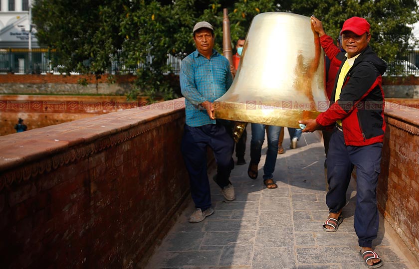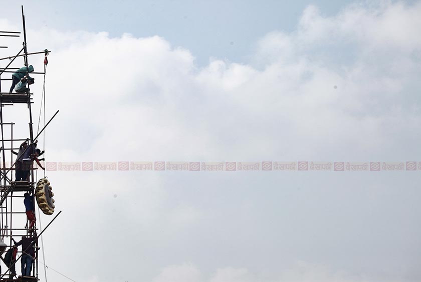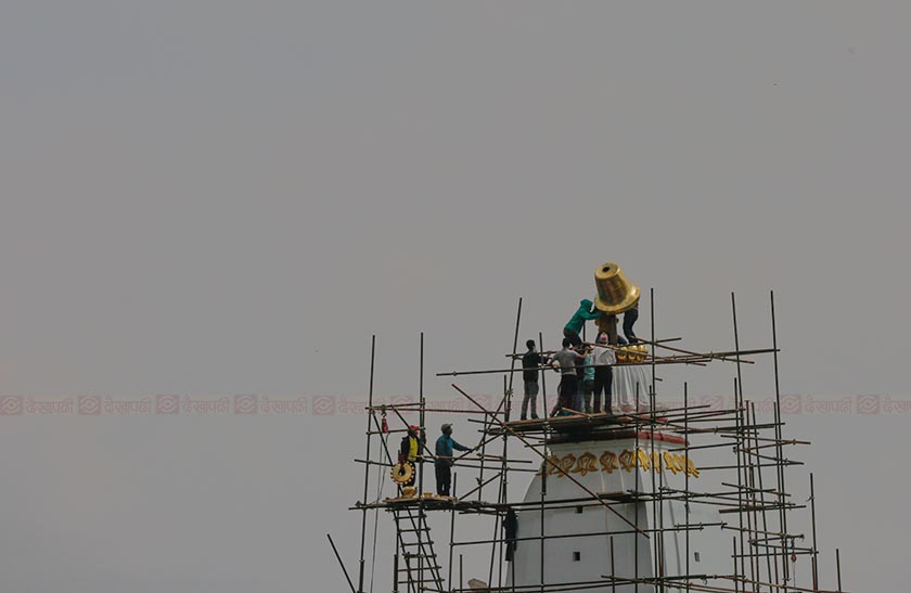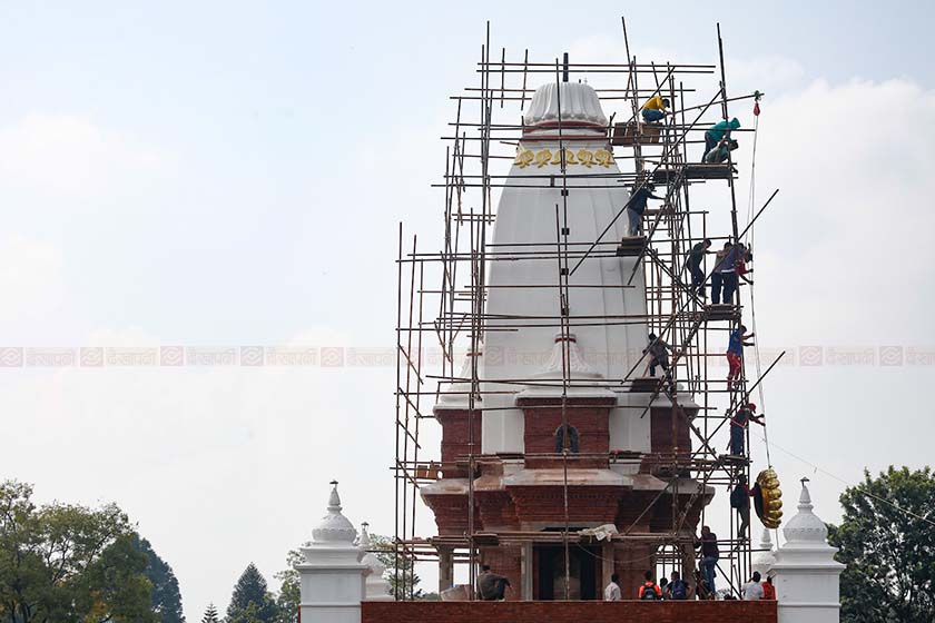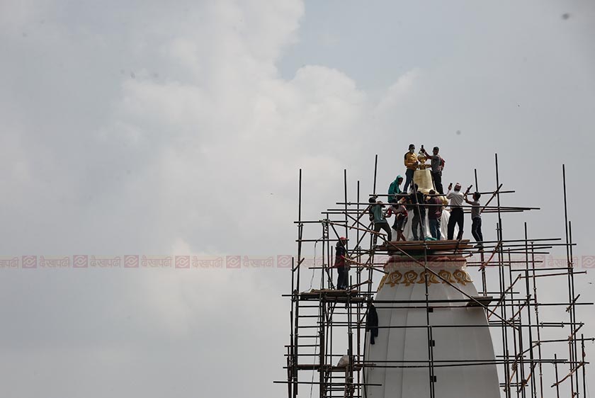 <p style="text-align: justify;">काठमाण्डौं। २०७२ वैशाखको महाभूकम्पले क्षति पुर्‍याएको रानीपोखरीको बीचमा रहेको बालगोपालेश्वर मन्दिरको गजुर आज राखिएको छ। </p>