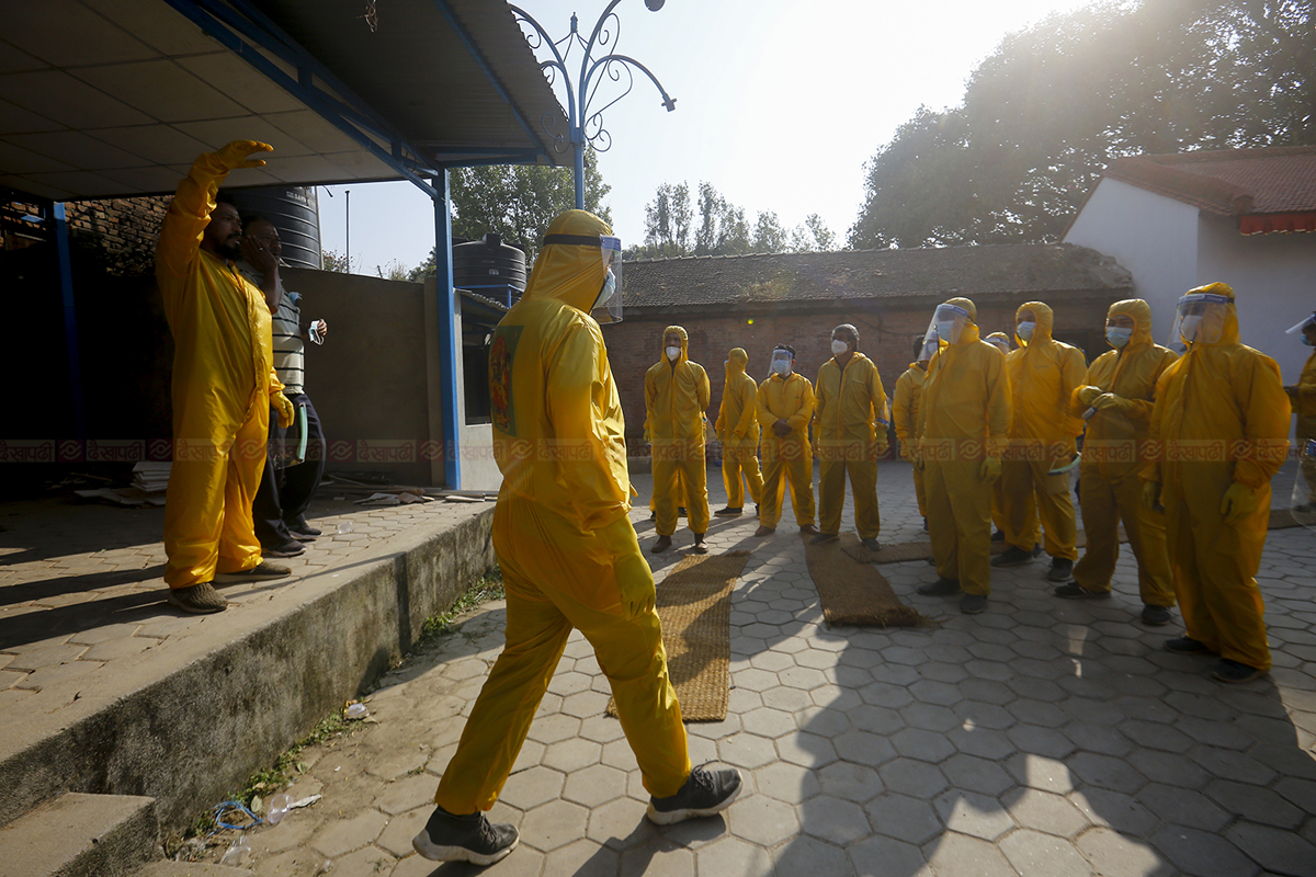 <p>यात्राका लागि भैरवको खट बोक्ने श्रद्धालु भक्तजनले पिपिइ तथा फेस सिल्ड लगाएका थिए भने बाजागाजा र भक्तजनको भीड पनि पहिलेभन्दा न्यून थियो। यस यात्राअन्तर्गत प्रत्यक्ष देवी कुमारीलाई भने वसन्तपुरस्थित कुमारी घरको ढोकासम्म मात्र ल्याई विराजमान गराइएको थियो। </p>