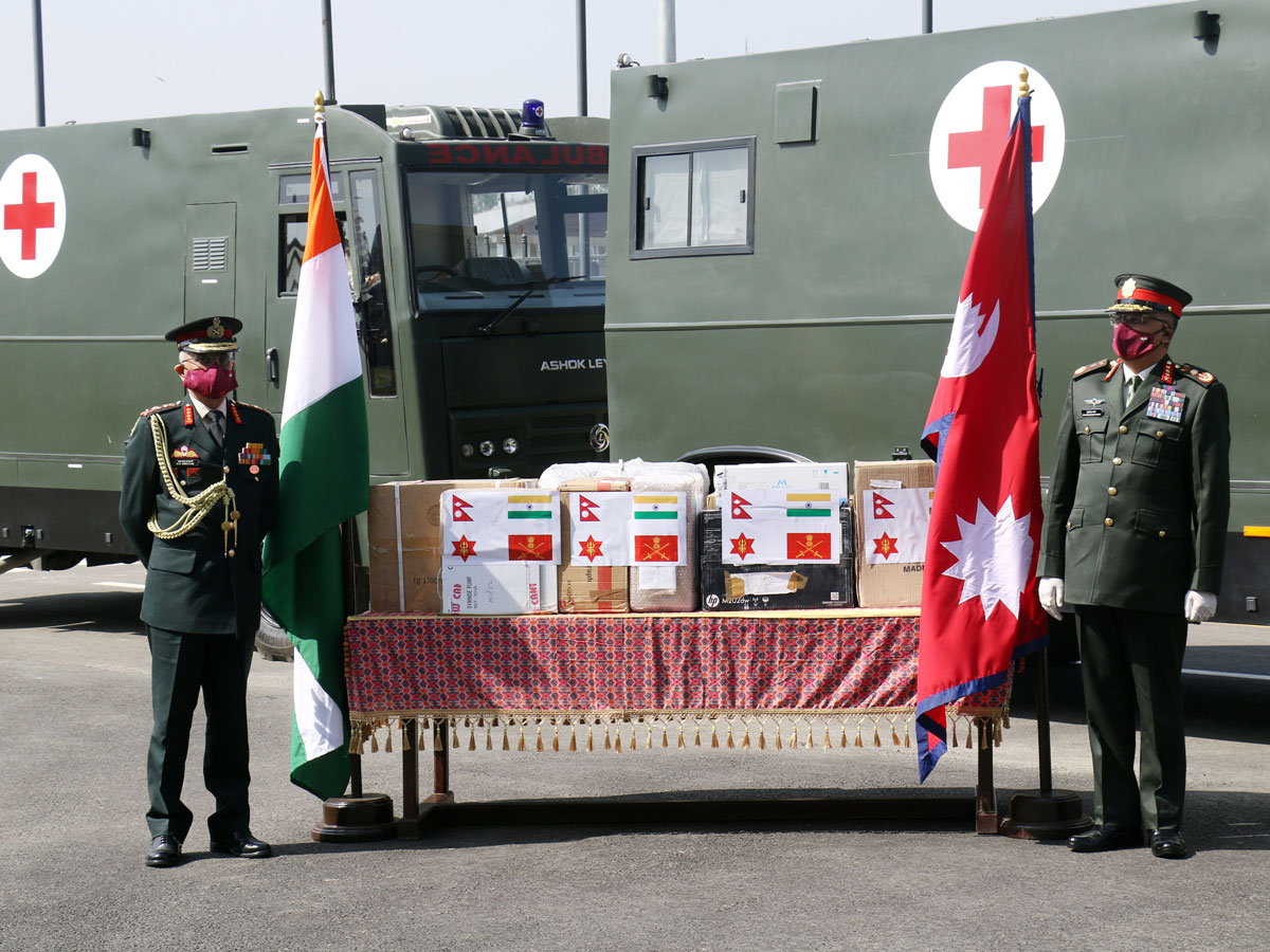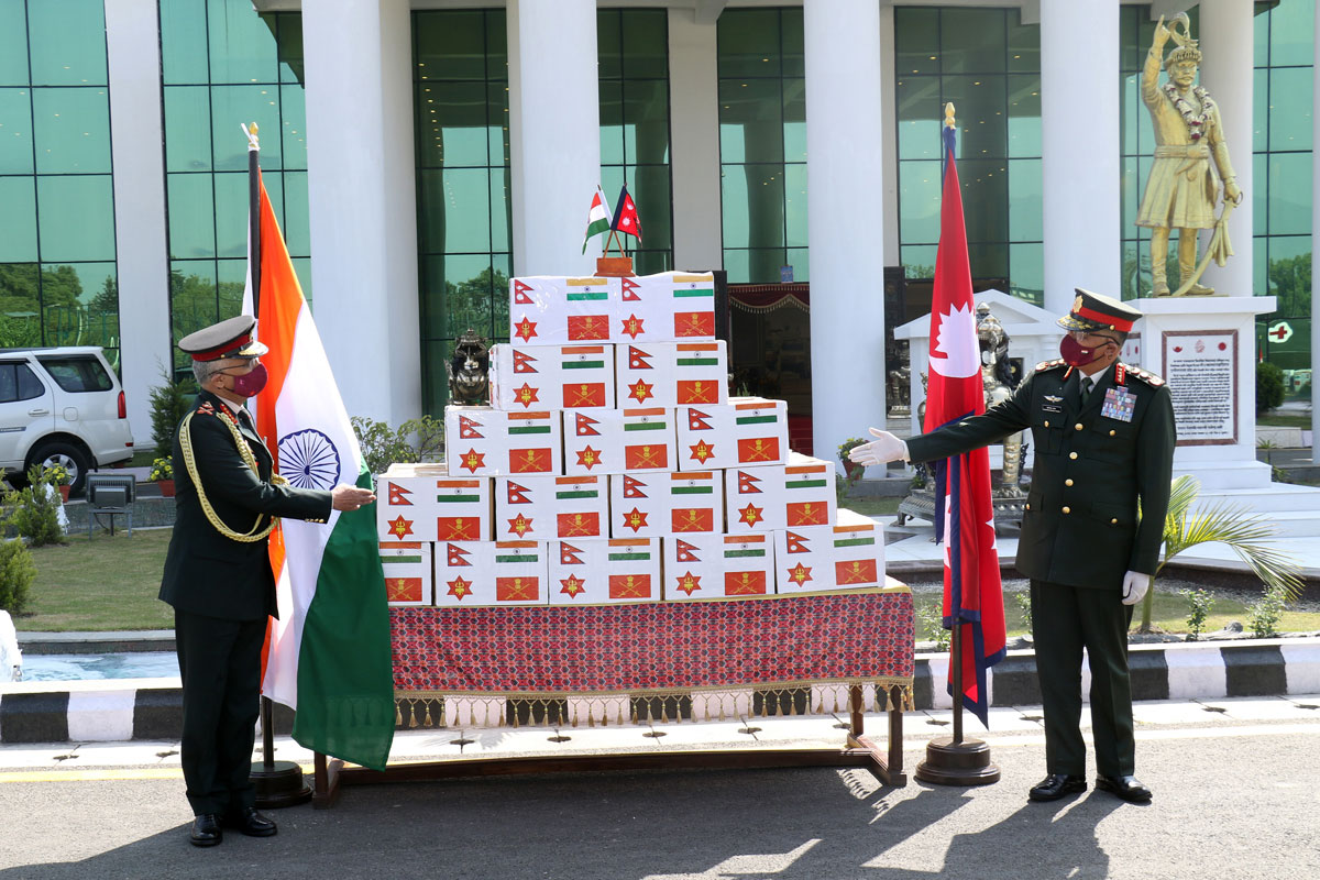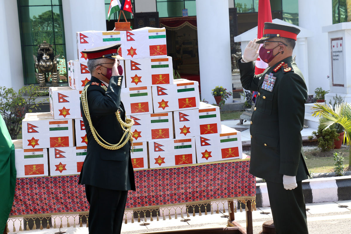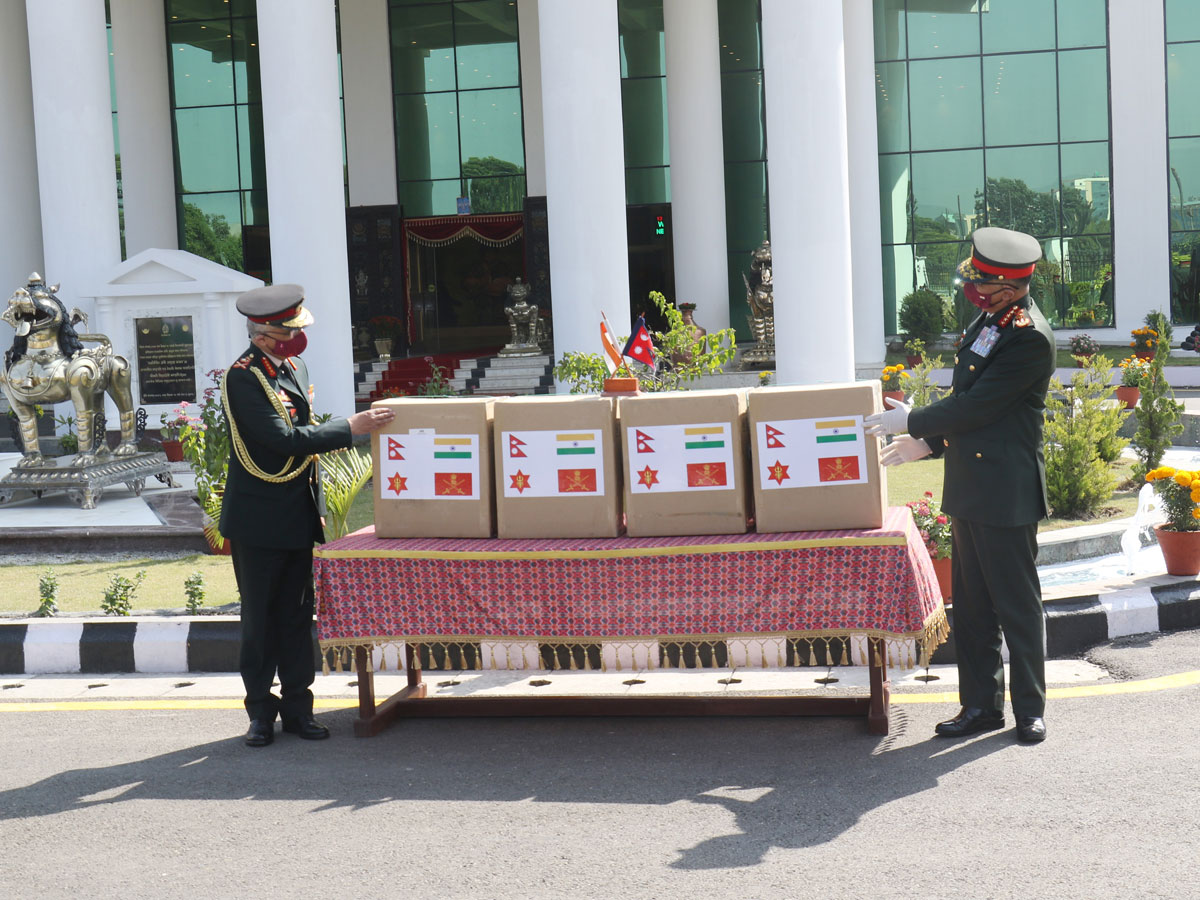 सो अवसरमा नेपाली सेनाले नेपालमा निर्मित कोभिड-१९ जोखिम नियन्त्रणका लागि प्रयोग हुने एक लाख थान मास्क भारतीय सैनिकलाई सहयोगस्वरुप उपलब्ध गराएको छ। उक्त मास्क प्रधानसेनापति थापाले भारतीय सेनाध्यक्ष नरवणेलाई हस्तान्तरण गरे।
