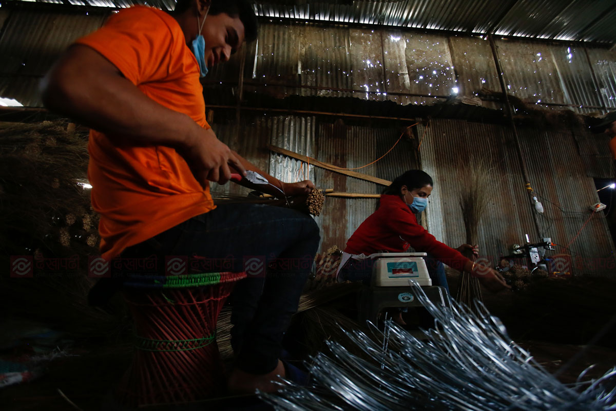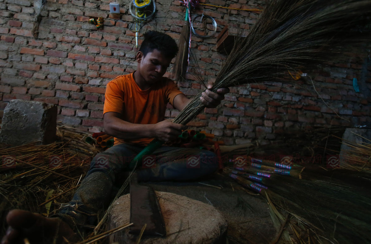 शुक्रबार सुकेधारास्थित गोरखनाथ कुचो सप्लायर्समा पुग्दा तिहारको लागि कुचो बनाउने काम चलिरहेको थियो। सप्लायर्सका सञ्चालकले पनि यस वर्ष विगतमा भन्दा व्यापार घटेको बताए।