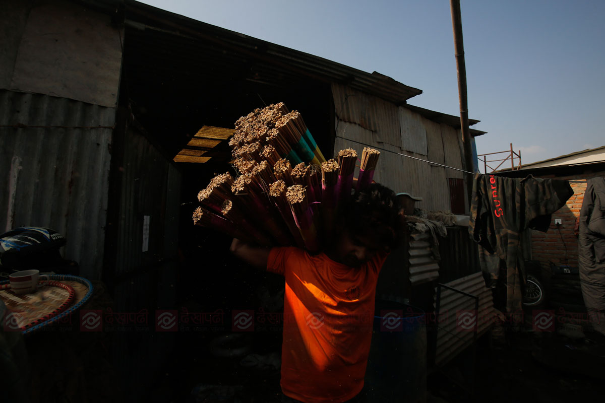 <p style="text-align: justify;">शुक्रबार सुकेधारास्थित गोरखनाथ कुचो सप्लायर्समा पुग्दा तिहारको लागि कुचो बनाउने काम चलिरहेको थियो। सप्लायर्सका सञ्चालकले पनि यस वर्ष विगतमा भन्दा व्यापार घटेको बताए।</p>