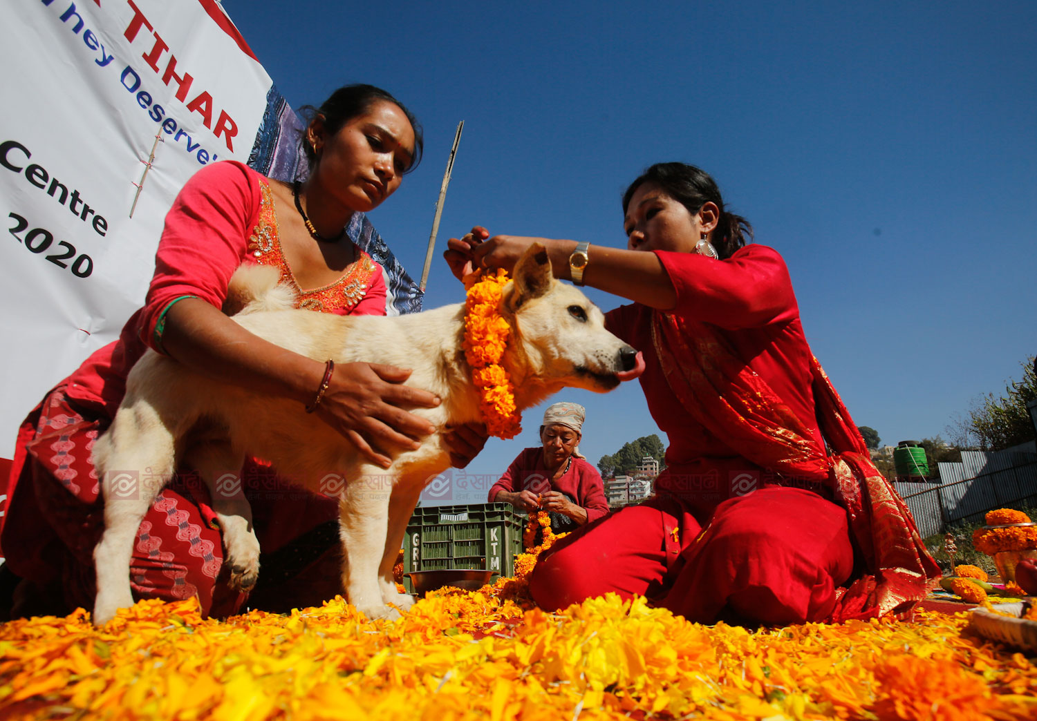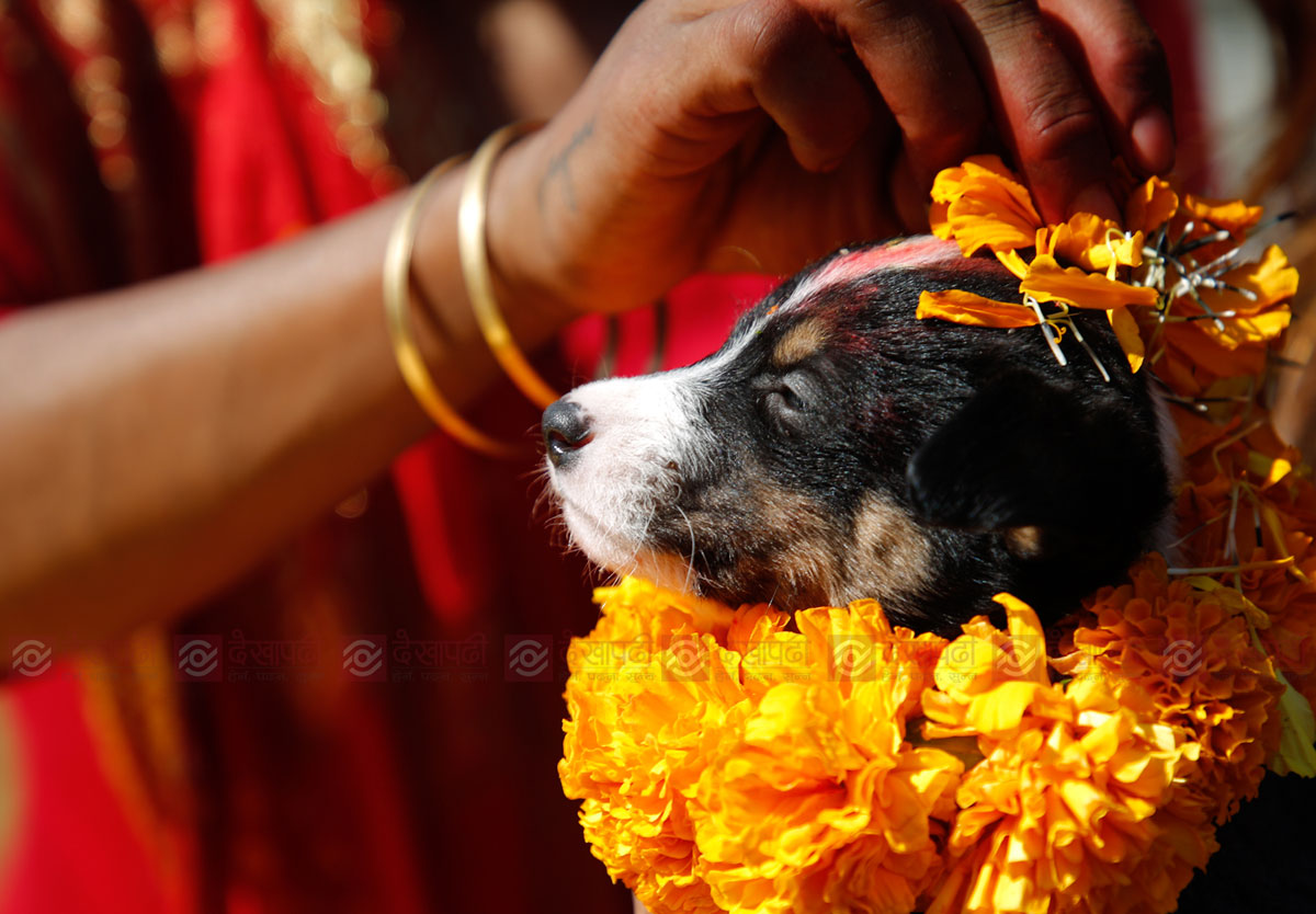 <p style="text-align: justify;">काठमाडाैं। यमपञ्चकको तेस्रो दिन आज इमान्दारीपूर्वक घरको सुरक्षामा खटिने कुकुरलाई मीठो खानेकुरा खान दिएर कुकुर तिहार मनाइँदै छ। </p>