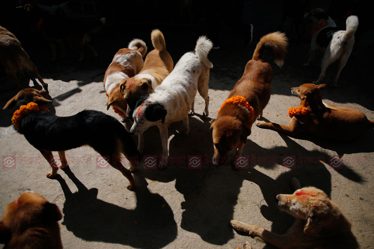 यसै अवसरमा ललितपुरकाे भैँसेपाटीस्थित स्नेहा केयरमा रहेका कुकुरहरुकाे पूजा गरिएकाे छ। सडकमा छाडिएका कुकुरहरुकाे संरक्षण गर्दै आएकाे स्नेहा केयरले कुकुर पूजाकाे आयाेजना गरेकाे हाे।
