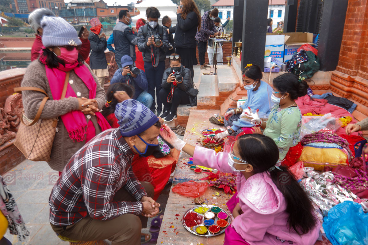 तस्वीरमा रानीपाेखरी बालगाेपालेश्वरकाे भाइटीका