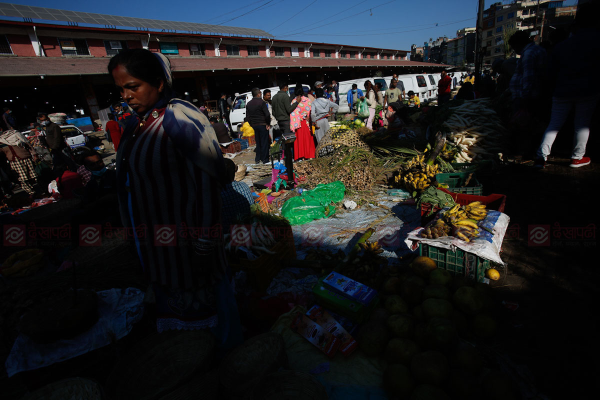 <p style="text-align: justify;">छठकाे अघिल्लाे दिन बिहीबार राजधानीका बजारहरुमा छठका लागि किनमेल गर्नेहरुकाे भीड देखिन्थ्याे। कालिमाटी फलफूल तथा तरकारी बजारमा फलफूल, तरकारीका साथै विभिन्न सामग्रीकाे जाेहाे गर्न श्रद्धालुहरु व्यस्त देखिन्थे।</p>