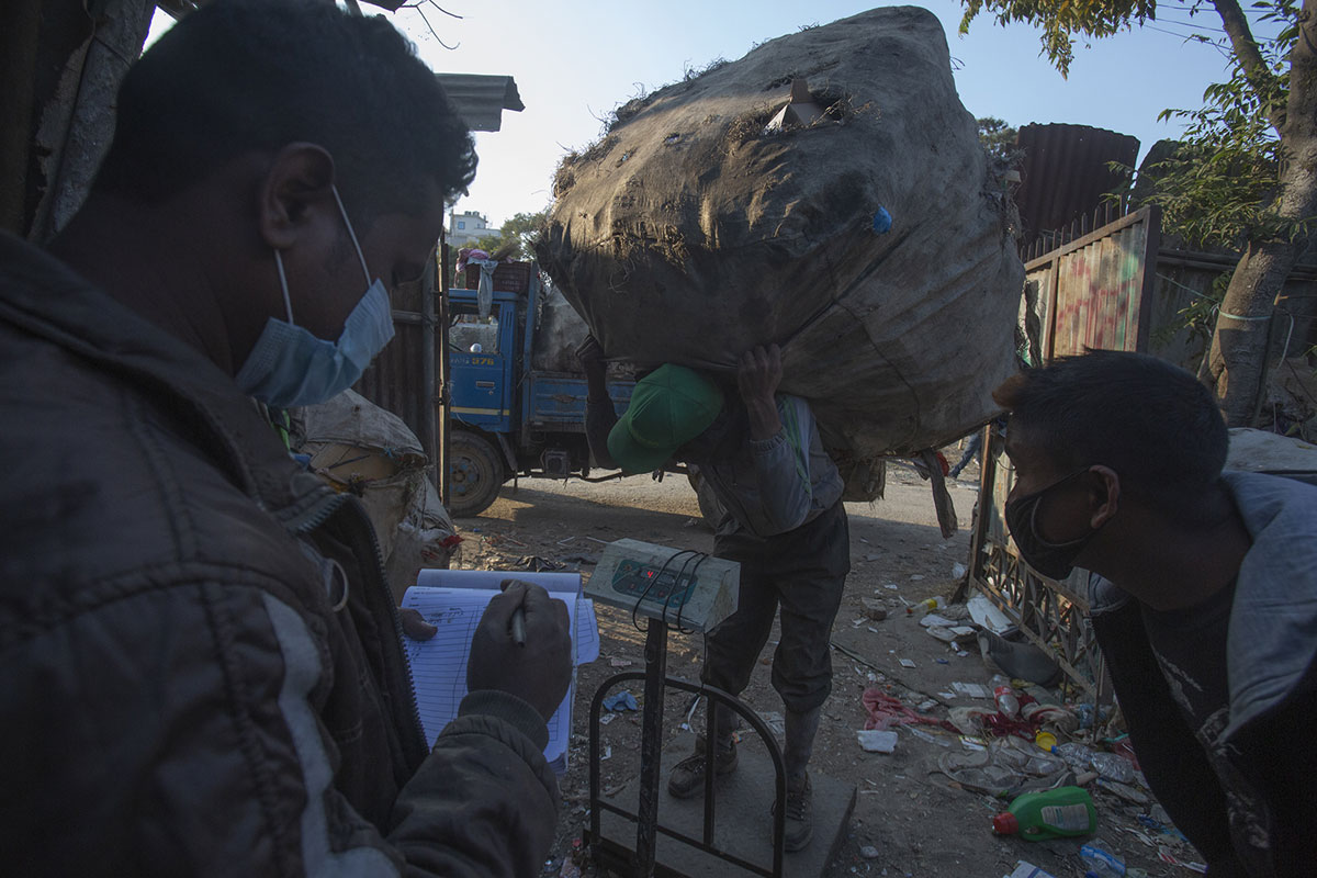 काठमाडौंको टेकुलगायतका फोहोर संकलन केन्द्रहरूमा पुग्दा फोहोरको थुप्रो पन्छाउँदै प्लास्टिक, टिनलगायत सामग्री छुट्याउनेहरूलाई देख्न सकिन्छ।