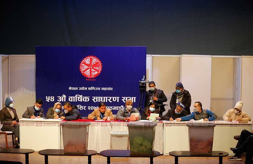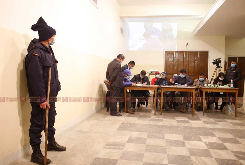 तस्वीरमा उद्योग वाणिज्य महासंघ निर्वाचनकाे मतगणना