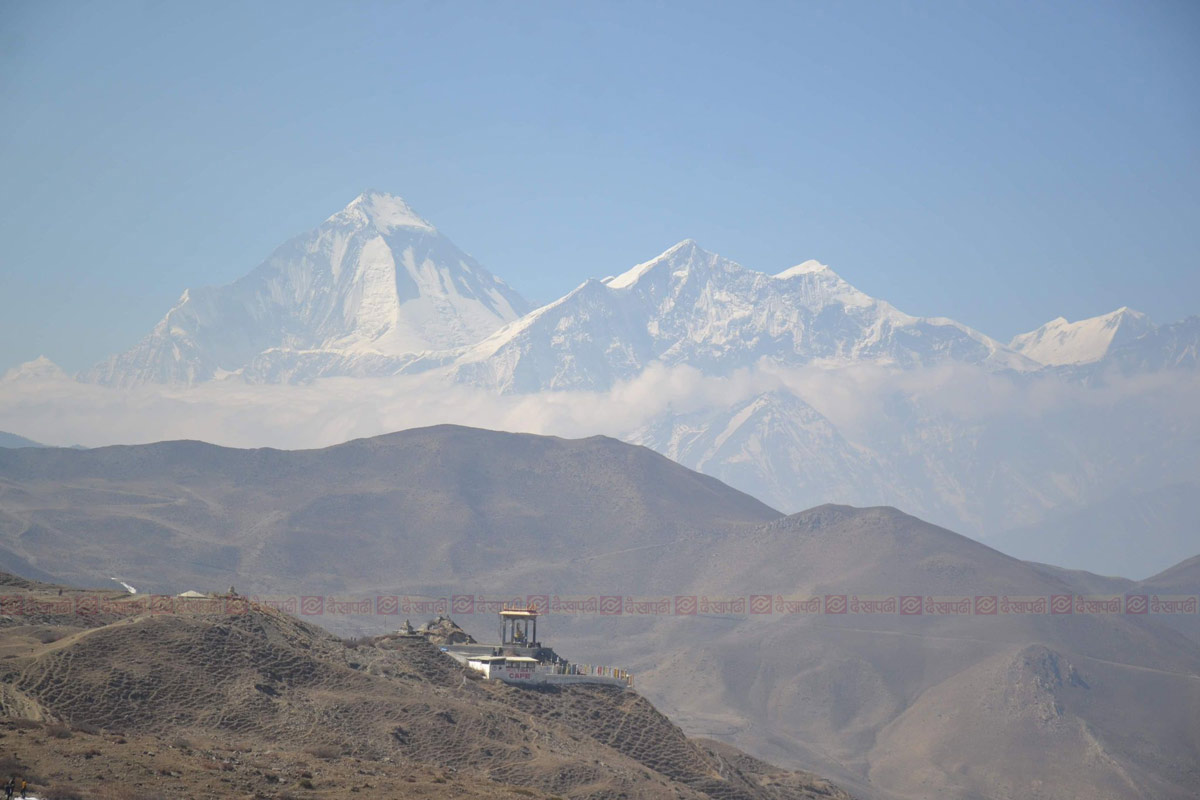 ठीक अगाडि धौलागिरि हिमाल। धित मरूञ्जेल दृश्यालोकन गर्यौं।