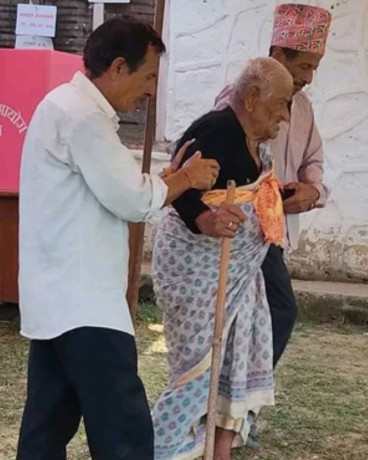११३ वर्षीया गोपीमाया पोख्रेलले दिइन् मतदान