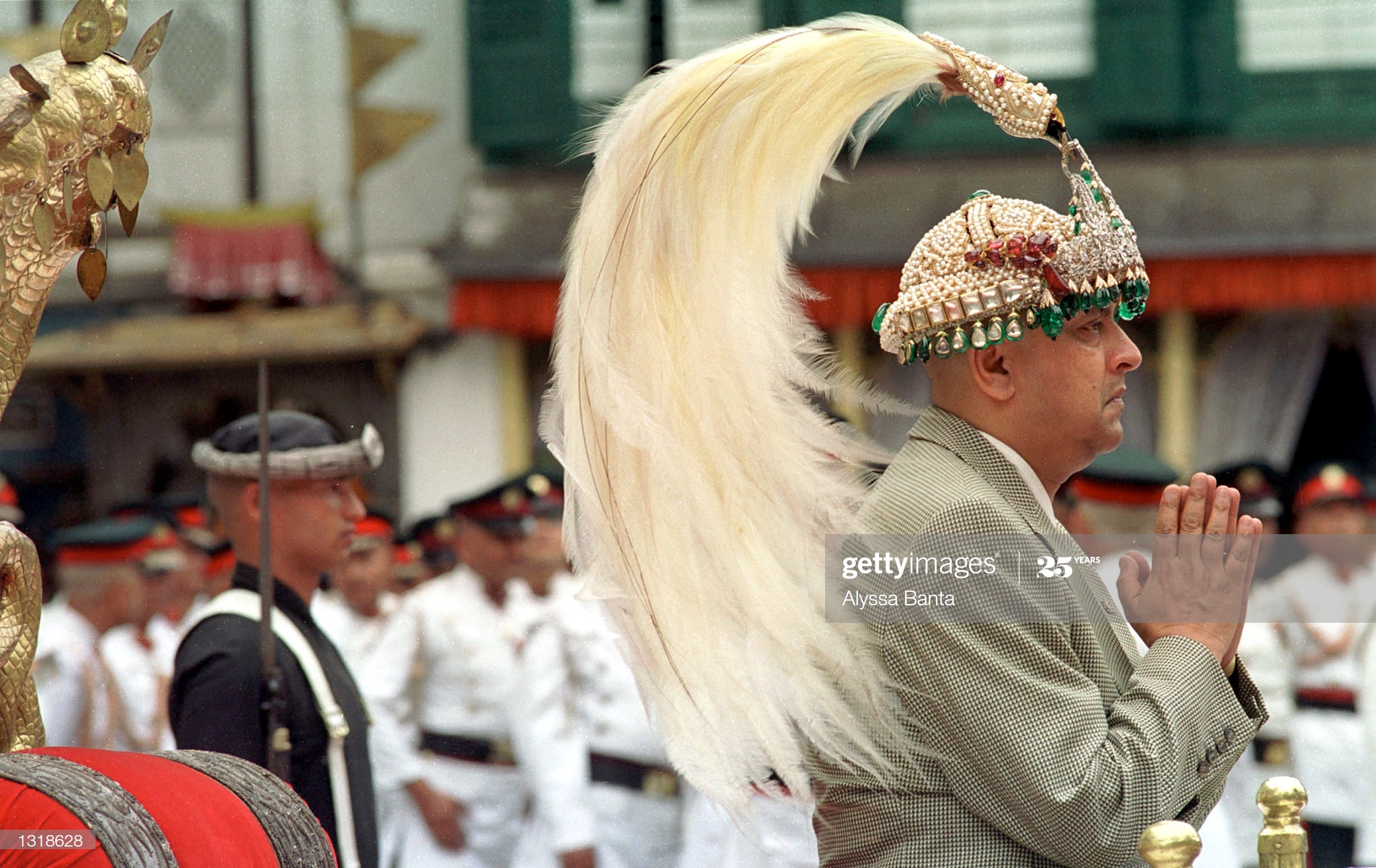 <figcaption class="caption-line">२२ जेठ २०५८ मा हनुमानढोका परिसरमा गद्दी आरोहण गर्दै पूर्व राजा ज्ञानेन्द्र शाह। २० गते अचेत अवस्थामा रहेका युवराज दीपेन्द्रलाई राजा घोषणा गरिए पनि केही घण्टामै उनको निधन भएपछि ज्ञानेन्द्रलाई राजा घोषणा गरिएको थियो। तस्वीर: एलिस्सा बन्ता/गेट्टी इमेज।</figcaption>