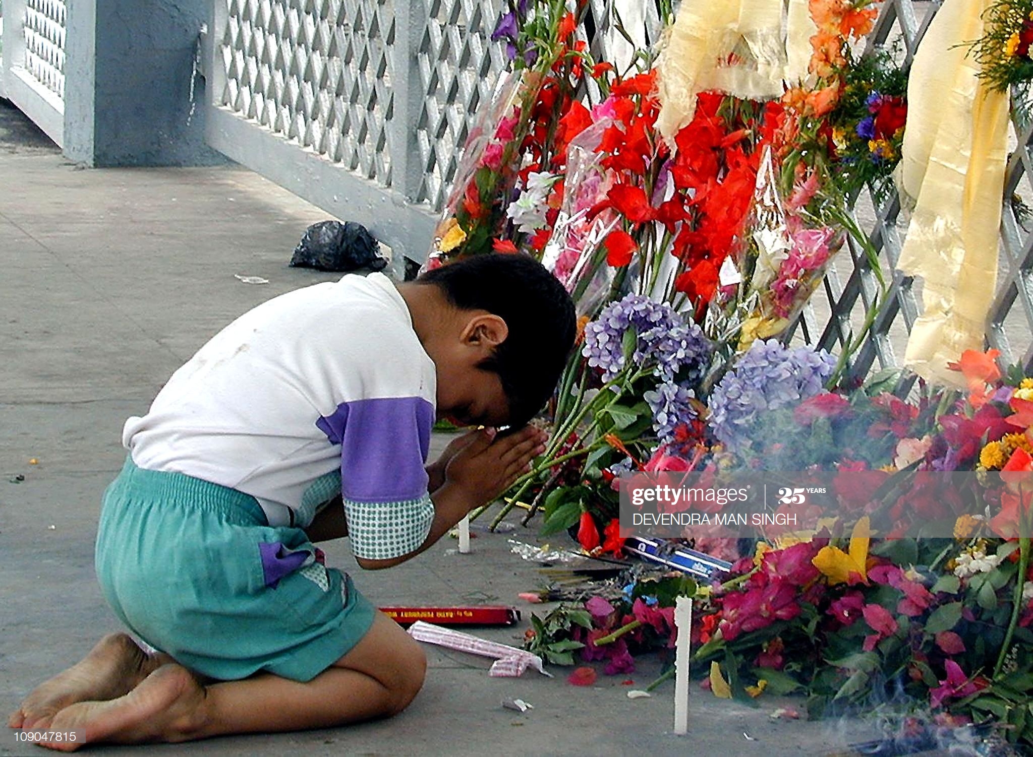<figcaption class="caption-line">मृतक राजा-रानीप्रति सम्मान प्रकट गर्दै एक बालक। तस्वीर: देवेन्द्रमान सिंह/गेट्टी इमेज</figcaption>