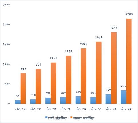 पछिल्लो एक सातामा बढेको संक्रमितको तथ्यांक हेर्दा सक्रिय संक्रमितले दुई हजारको संख्या नाघ्न ढिलोमा भोलि एक दिन मात्र बाँकी छ।