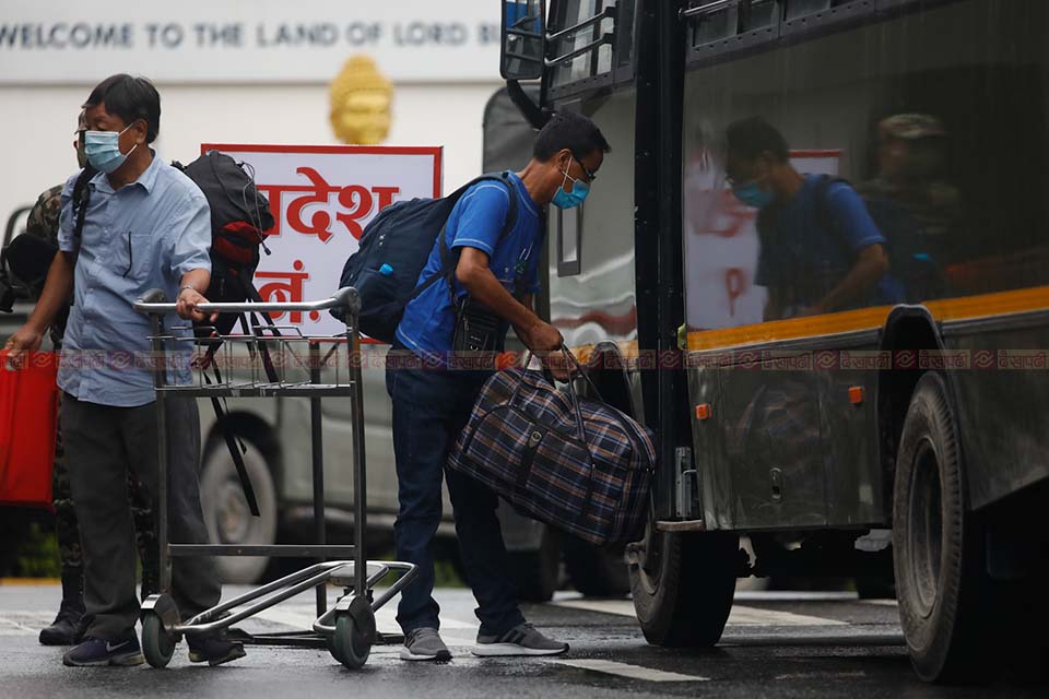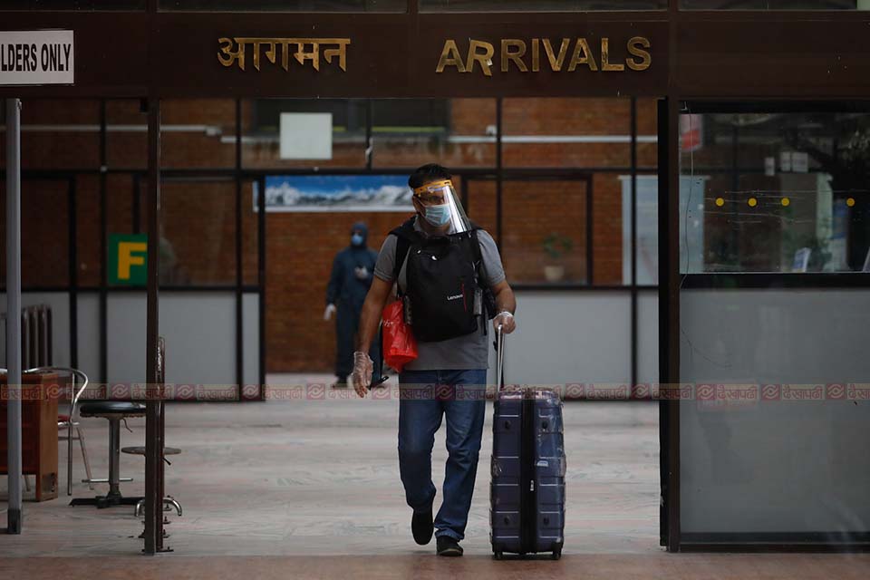 विमानस्थलमा आइपुगेका नेपालीलाई पहिले नै तयार पारिएको विधि अनुसार भौतिक दूरी कायम गर्दै विमानस्थलबाट बाहिर पठाइएको छ।