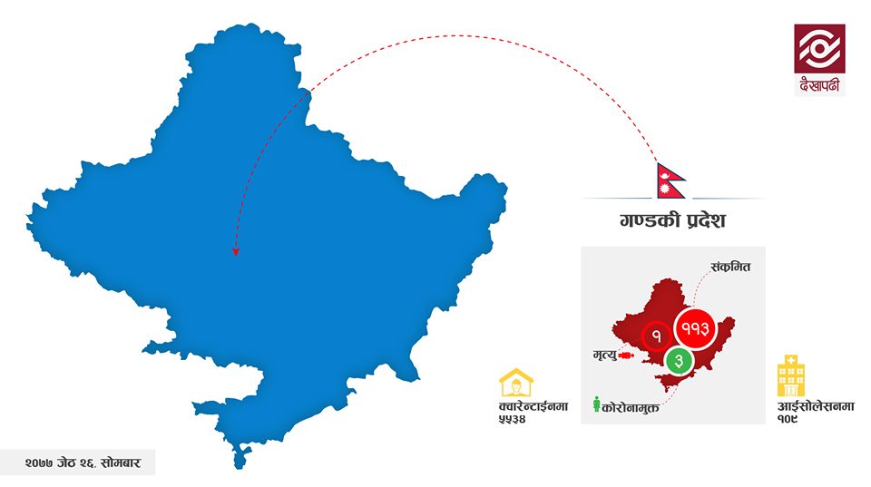 ११३ संक्रमित भएका गण्डकी प्रदेशमा तीनजा कोरोनामुक्त भएका छन् भने एक जनाको मृत्यु भएको छ।