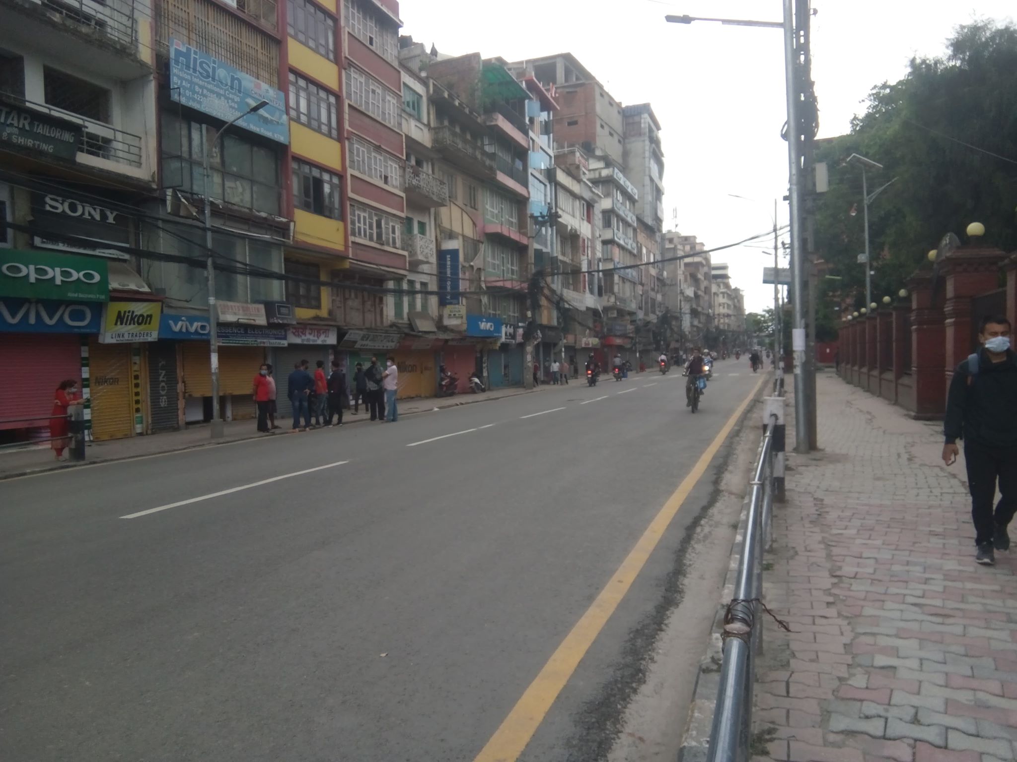 प्रहरीले पसल बन्द गराउँदै हिँडेपछि व्यापारीहरूले भने आधा सटर मात्र खुला गरेका छन्।