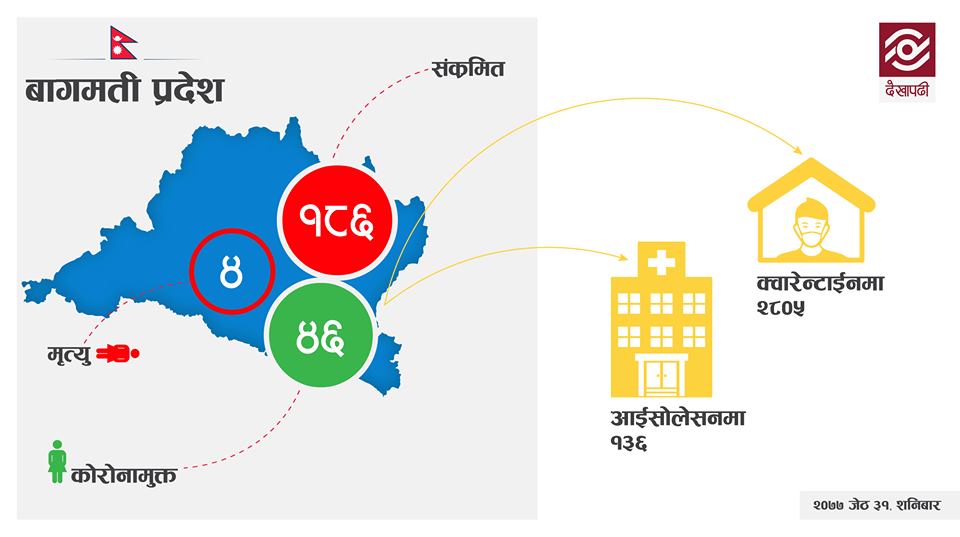 पछिल्लो २४ घण्टामा बागमती प्रदेशमा भने नयाँ केस देखिएको छैन। नेपालमा अहिलेसम्म ९१३ जना कोरोनामुक्त भएका छन्।