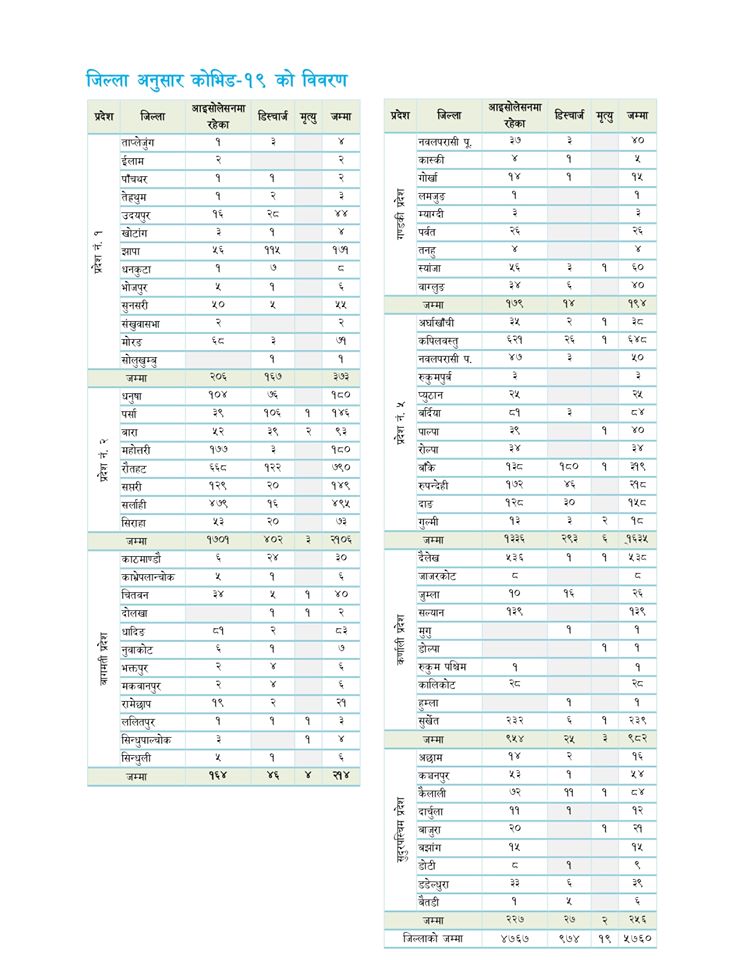 प्रदेश २, प्रदेश ५, कर्णाली र सुदूरपश्चिम प्रदेशका सबै जिल्लामा संक्रमण पुगेको छ।