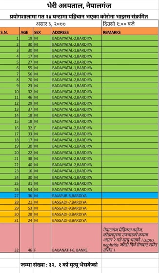बर्दियाका थप ३१ जनामा कोरोना संक्रमण