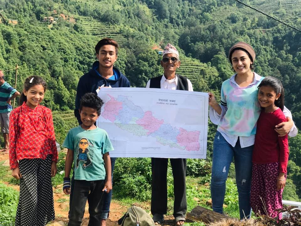 हालै उनले भक्तपुरको सूर्यविनायकमा स्थानीयलाई देशको वास्तविक भुगोलबारे जानकारी गराउनुका साथै उपहारस्वरूप नक्शा दिइन्।